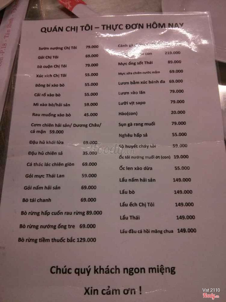 Quán Chị Tôi - Nhậu Sân Vườn - Nguyễn Sơn