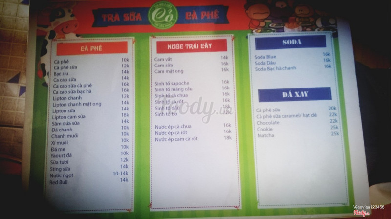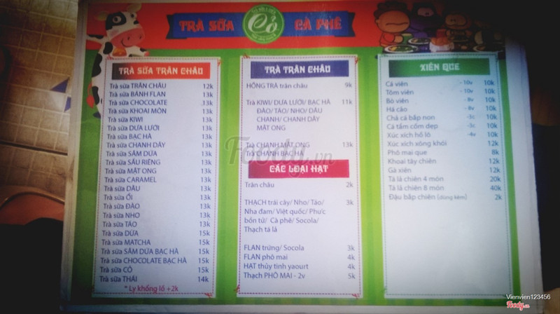 5.6Giá bình dân, rất hợp lýQuán này ngay phía sau trường Công Nghiệp, giá rất sinh viên. Phục vụ cũng ok, không chăm chăm khách nhưng lúc cần gọi là xuất hiện ngay. Mình vốn ghiền trà sữa, thấy trà của quán cũng khá ổn, trân châu hơi cứng, kiểu nó phải giòn giờn sực sực mới thích nhưng trân châu ở đây là quá cứng để nhai :) Chỗ này thích hợp cho các bạn đến tự kỉ, gọi 1 ly nước rồi ôm lap ngồi suốt ngày luôn cũng được. Phía trước quán có xe bán gỏi cuốn, bánh tráng trộn cũng khá vừa miệng, muốn ăn kêu rất tiện ;) ...Xem thêm