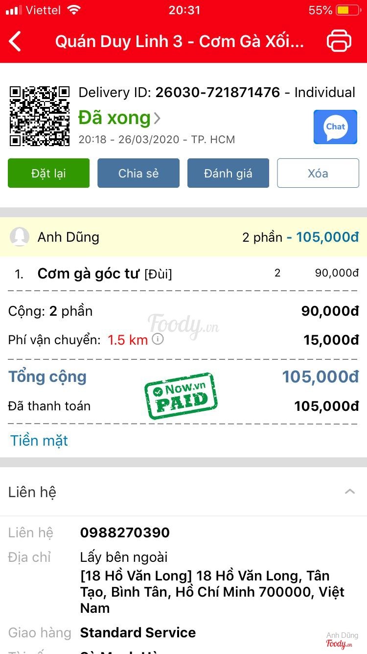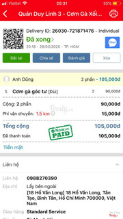 3.4Quán Duy Linh 3 - Cơm Gà Xối Mỡ & Cơm Chiên Dương ChâuQuán làm ăn mất uy tín, đặt 3 lần qua 3 app khác nhau goviet, grab, foody. Đặt cơm đùi gà góc 4, nhưng toàn giao cơm ức gà. Gọi điện nhân viên giao hàng toàn nói là quán làm sẵn em ko biết, ko đổi lại được. ...Xem thêm