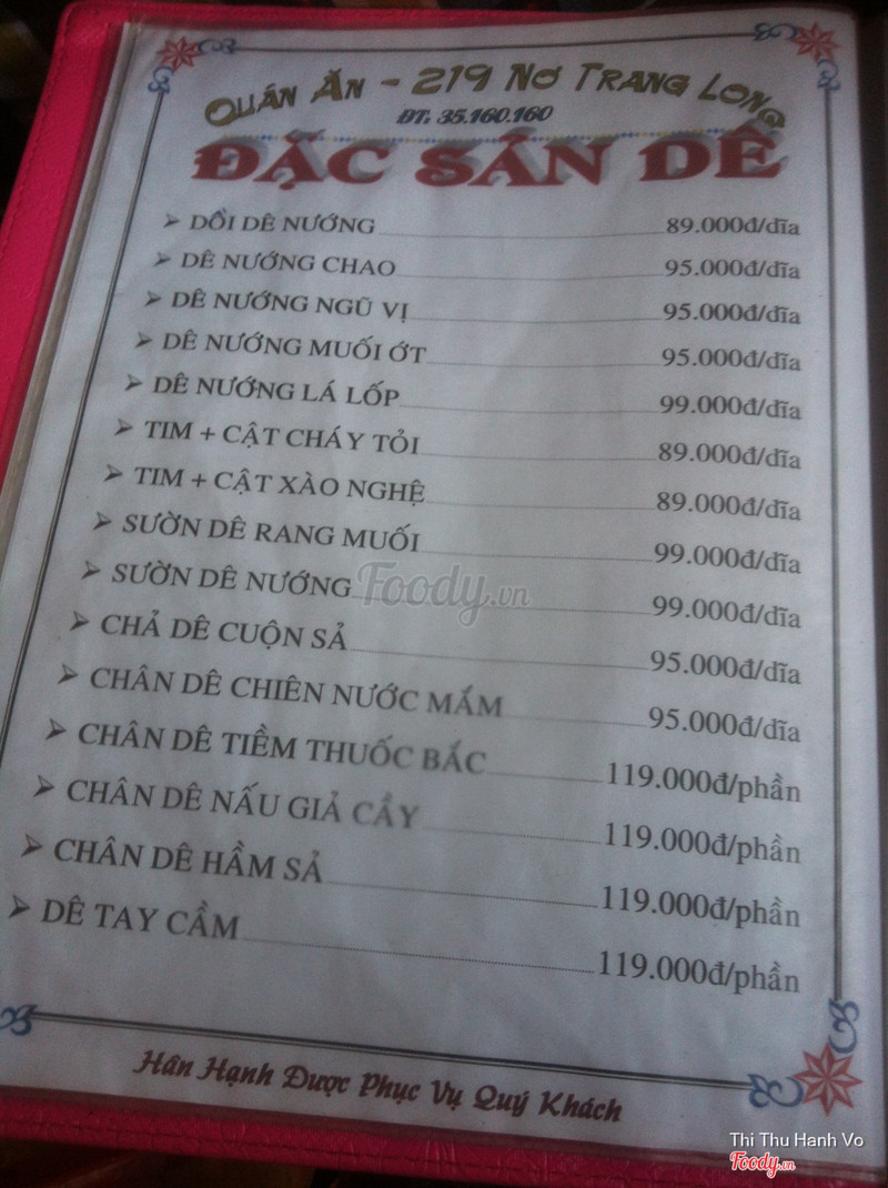 6.6Món ăn đa dạngNhiều món ăn,có thể đáp ứng cho nhiều thành phần khách hàng,giá nhìn chung cũng như các quán khác,quán có nhiều phục vụ nữ,đa số các bàn nam vào ăn nhiều hơn nữ,có nấu món theo yêu cầu của khách,nhân viên nhiệt tình,vui vẻ.Là quán ăn có nhiều món ăn nhất ở khu vực đường Nơ Trang Long,quận Bình Thạnh,mọi người thỏa sức chọn món theo ý mình và cả nhóm,đến đây mọi người sẽ cảm thấy rất thoải mái dù là nam hay nữ vì thái độ phục vụ của nhân viên rất tốt,có thể dẫn bạn bè đến để ăn uống hoặc dẫn khách hàng đến để thỏa thuận công việc. ...Xem thêm