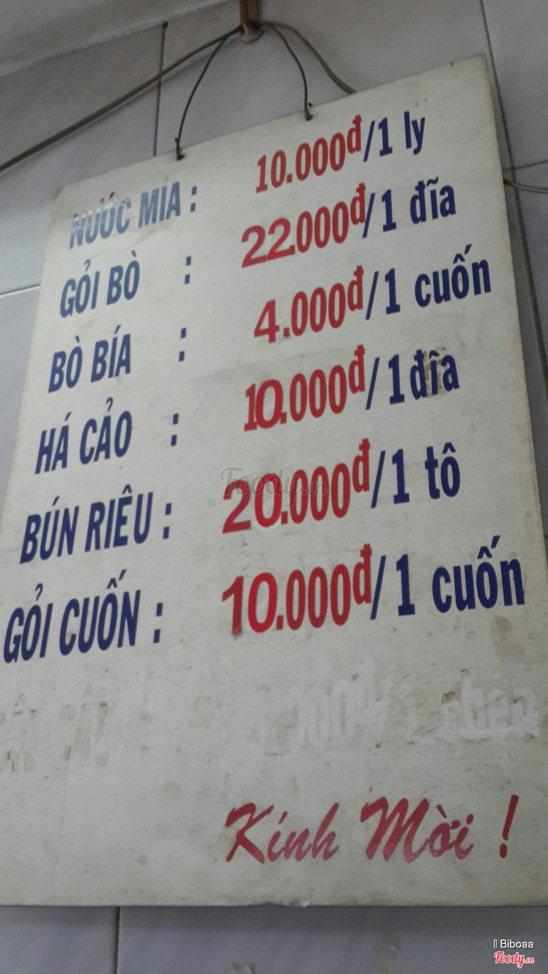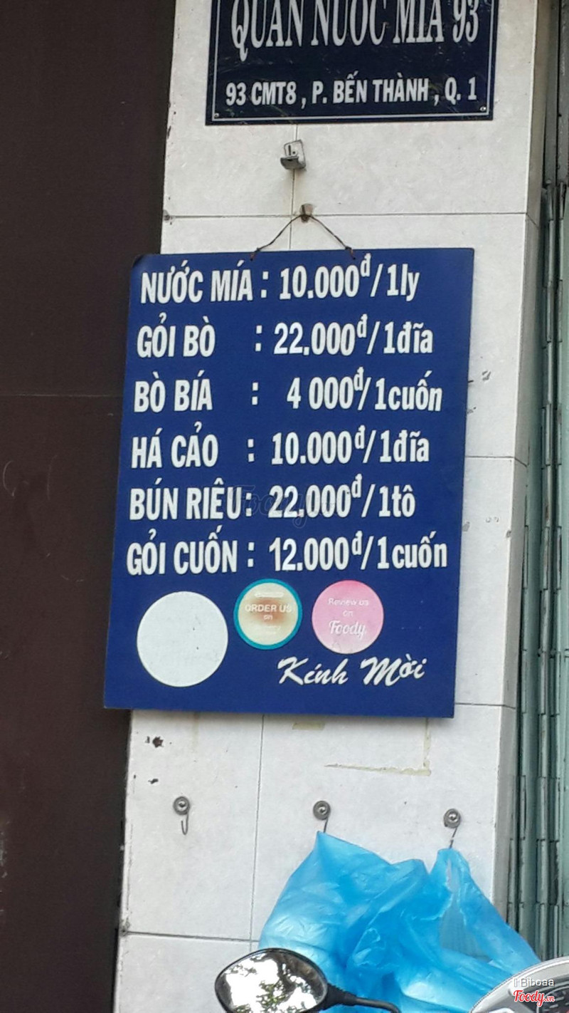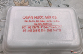 6.6Quán Nước Mía & Bò Bía 93 -***Tháng 8Quán dễ tìm, mặt tiền ngay góc ngã tư NTMK, quán bán các món ăn vặt: bò bía, gỏi cuốn, há cảo, bún riêu...giá bình dân. Phục vụ nhanh, thân thiện. Chỗ ngồi vừa phải, sáng sủa. Nước mía ngon 10k/1ly. Bò bía 4k/1 cuốn, nhân khá ngon, nước tương nêm vừa, không mặn, đậm vị đậu. Há cảo kích thước hơi nhỏ, ăn không ấn tượng lắm, do nhân ít, vỏ bánh dày. Bún riêu nước dùng nhạt, tùy vị giác mỗi người mà tự nêm thêm mắm tôm cho vừa ăn, 1 tô 20k khá ít riêu và đậu hủ, rau ăn kèm tươi. ...Xem thêm