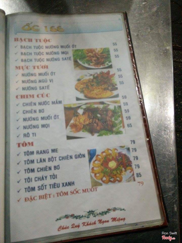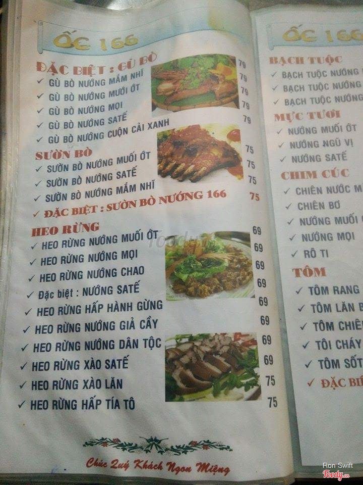 7.4Quán Ốc 166Quán nằm ngay trên mặt tiền đường nên rất dễ tìm. Quán coa không gian bên trong và ở vỉa hè. Thực đơn với rất nhiều món phong phú đa dạng. Lần đầu đến quán, mình chọn ốc mỡ xào, nghêu hấp thái, ốc bươu hấp xã. Ngồi đợi khoảng 5 phút là món ăn được đem ra, mở nắp nồi đất ra là nghi ngút khói, thơm lừng, ốc chấm với muối tiêu chanh thì ngon phải biết. Nước nghêu hấp khá ngọt, thơm thơm mùi sả, nghêu mềm ngon. Giá cả cũng khá vừa. Phục vụ vui vẻ, lịch sự, có điều ở đây không có khăn giấy nên tụi mình xài khăn lạnh (tính tiền nhé). ...Xem thêm