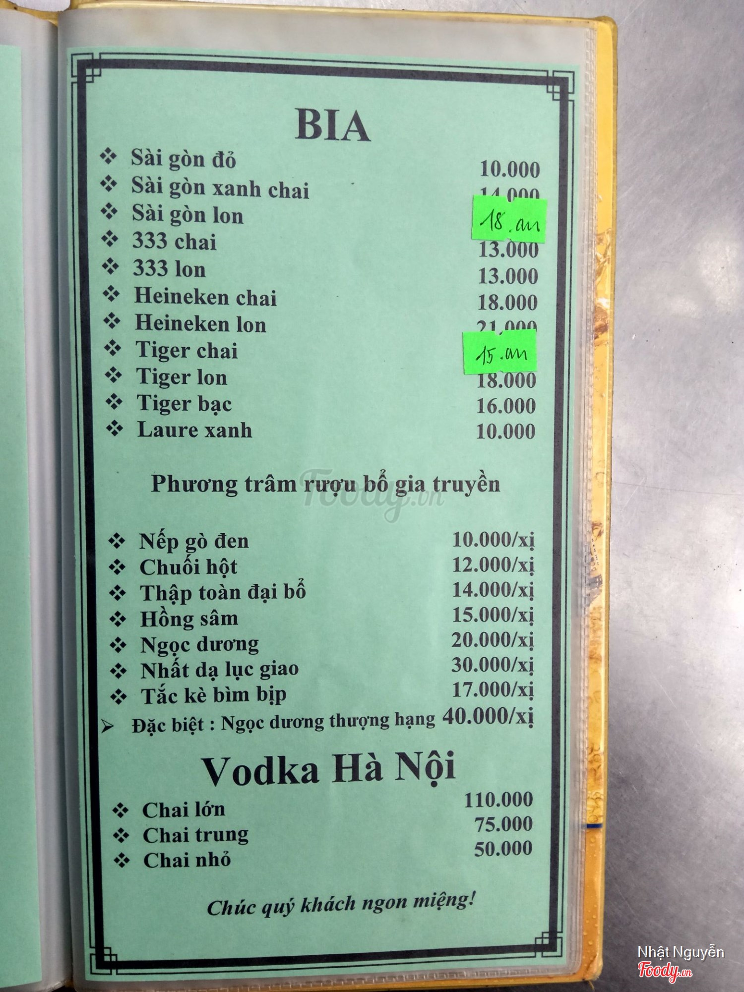 Ghi chú đặt bàn