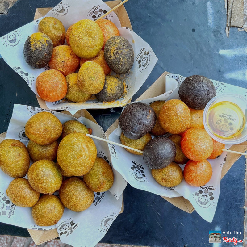8.2Rich Cha - Khoai Bong BóngKhoai bong bóng chuẩn bị Đài Loan, quán do người Đài chế biến nên hương vị chất lượng ngon miễn chê nha. Khoai nguyên liệu đa phần đều từ Đài luôn, 5 màu mỗi màu là mỗi vị khoai khác nhau. Ăn nóng khá ngon, sau khi được chiên theo kĩ thuật để làm tròn phồng khoai thì ra hộp sẽ có 3 vị: truyền thống, lắc phô mai, chấm mật ong. ...Xem thêm