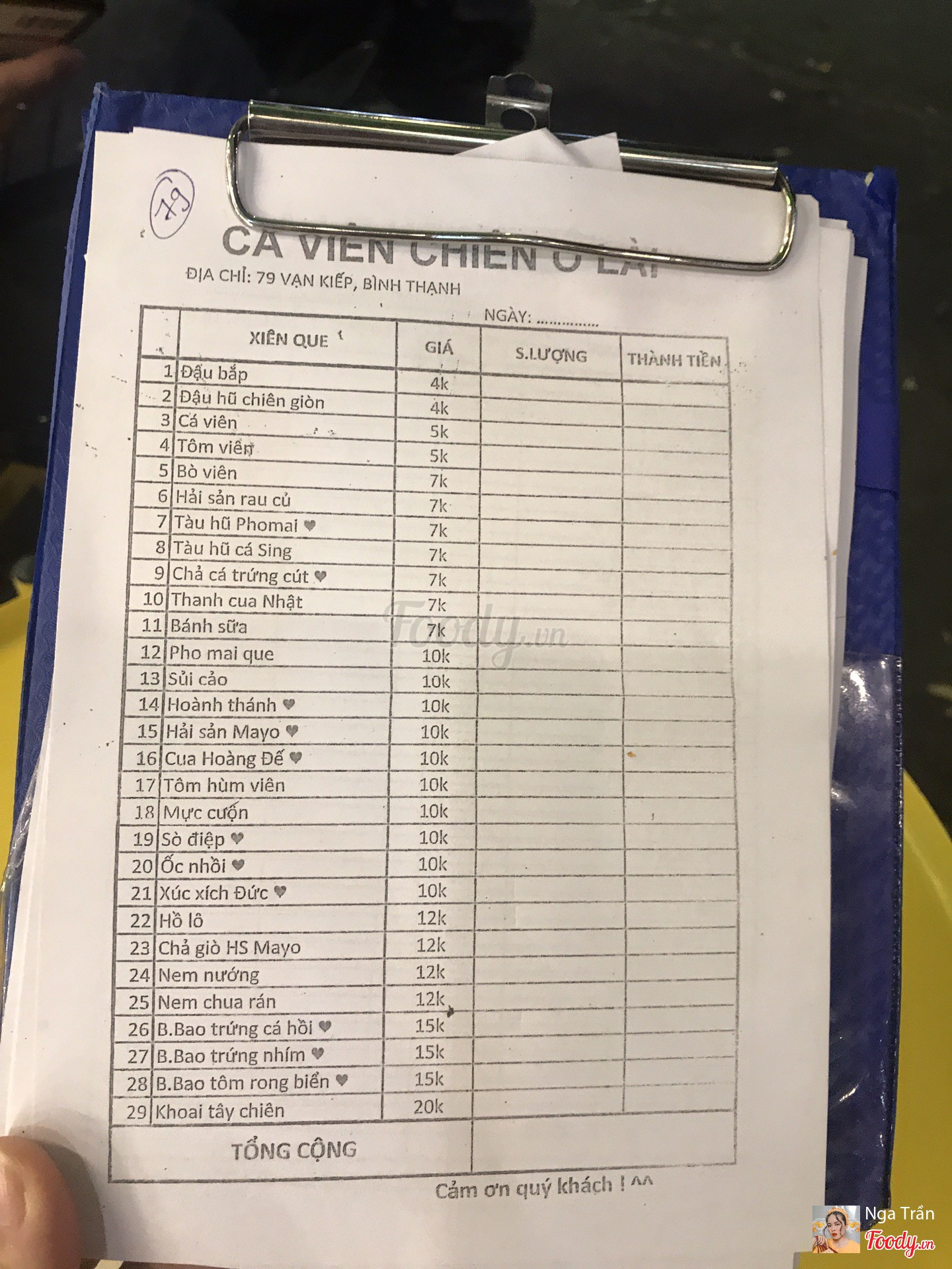 Ghi chú đặt bàn