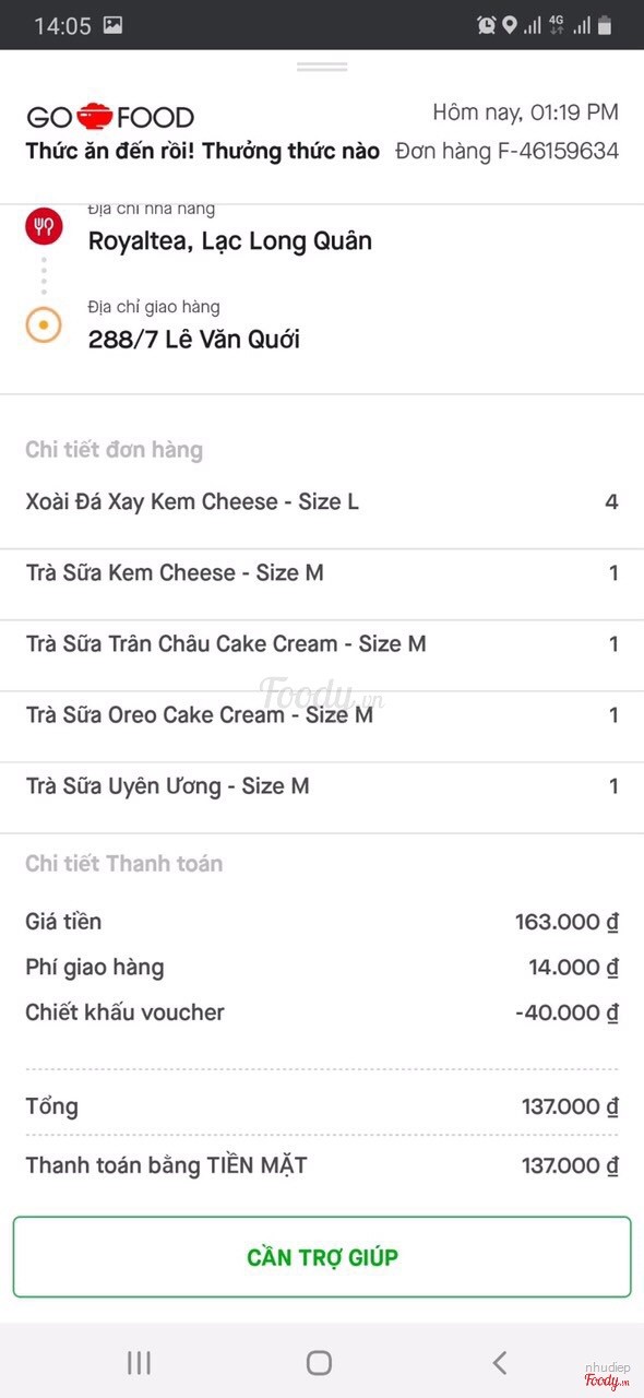 1.0Trà sữa hay nước lãHôm nay ngày 17/12/2019 quán có giảm giá 70% nên em có đặt 8 ly trà sữa và sinh tố. Em cứ tưởng trà sữa royaltea ngon lắm nhưng không ngờ uống như nước lã em tưởng 1 mình em xui nhưng không 8 ly ly nào cũng vậy rất dở nhạt lạc lõng. Kêu trà sữa trân châu thì không có trân châu đã thế sinh tố thì nhạt trà sữa như pha với nước lã oder qua goviet 8 ly làm 5 ly không lẽ giảm giá trà sữa là làm trà sữa tăng nước hay sao vậy hãy bán đúng giá đừng giảm để được uống trà sữa đàng hoàng ví dụ uống dô bị gì ai đền ai lo cho em 😭😭😭 đã thế thường túi đựng trà sữa có in logo của royaltea sao tự nhiên nay không có. Không lẽ trà sữa giả taaa 🤔🤔🤔 ...Xem thêm