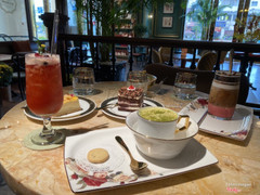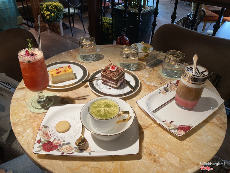9.2RuNam Boutique - Terra RoyalHẹn hò mấy cô bạn thân ra đây uống trà chiều, ended up gọi 3 ly không phải trà lol. Tụi mình gọi matcha trứng (ngon, không bị ngọt gắt hay quá đắng), red velvet latte (cũng rất vừa miệng) và nước ép gì đó màu đỏ xinh xắn. Tính gọi set bánh 295k mà nhà hàng không có nên gọi 2 chiếc bánh mà ăn cũng no căng. Bánh cheesecake khá đặc nên ăn sẽ mau no á, còn chocolate vụn thì vị khá giúng bánh kem sinh nhật. Tầm 65-95k/bánh, còn nước tầm 80-150k/ly. Quán decor siêu đẹp siêu sang siêu chảnh :)))), mới mở còn vắng nên tụi mình chụp 1000 tấm ảnh sống ảo ở đây thoải mái luôn. ...Xem thêm