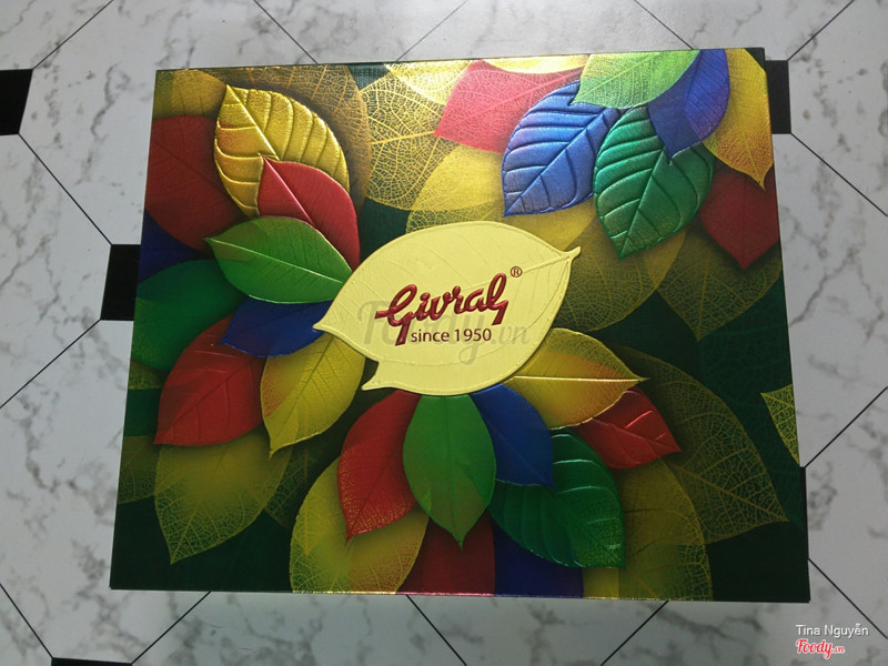 8.0Bánh rất ngon , làm quà tặng sang trọng khỏi chê.Nhà mình năm nào cũng háo hức và thèm ăn bánh Trung Thu sớm. Vì lúc này bánh mới ăn sẽ thấy ngon hơn là để cận ngày mới ăn thì chẳng còn gì thú vị nữa. Sẵn dịp gần Givral và cũng chưa mua bánh Trung thu của thương hiệu này bao giờ nên muốn trải nghiệm thử chất lượng ra sao. Ghé vào mua 1 hộp 4 bánh 4 loại , trọng lượng 250gr ( 2 trứng ) , bánh hơi bị to vậy ăn cho đã. - Vi cá gà quay yến sào - Gà quay vi cá - Đậu xanh sầu riêng - Khoai môn hạt sen Vỏ bánh mới ăn cảm nhận ngon miệng hẳn , mềm và nhân bên trong khá là ngon nhé , chất lượng ngoài sức mong đợi , ăn không mà vẫn thấy ngọt vừa không ngán .. chứ đừng nói là uống kèm trà nóng thì chắc tuyệt vời rồi. Loại nào cũng ngon xuất sắc. Kèm theo con dao cắt bánh và hộp trà nhỏ. Hộp đựng khá bắt mắt , nhìn rất sang và đẹp lung linh với họa tiết sặc sỡ , cầm nặng tay. Giá cả tương xứng với chất lượng. Gia đình mình vô cùng hài lòng. ...Xem thêm