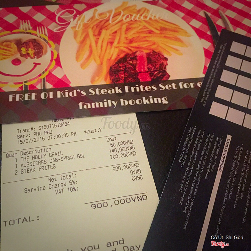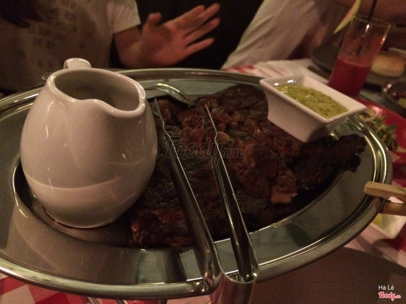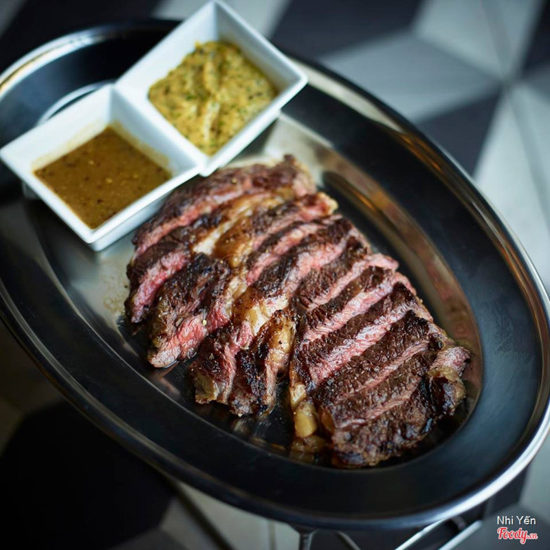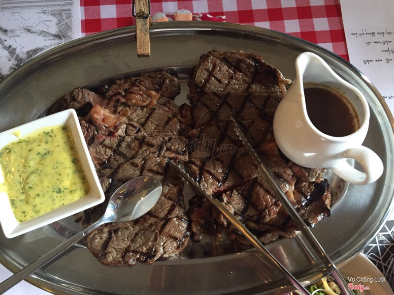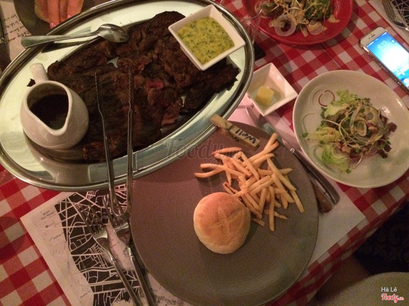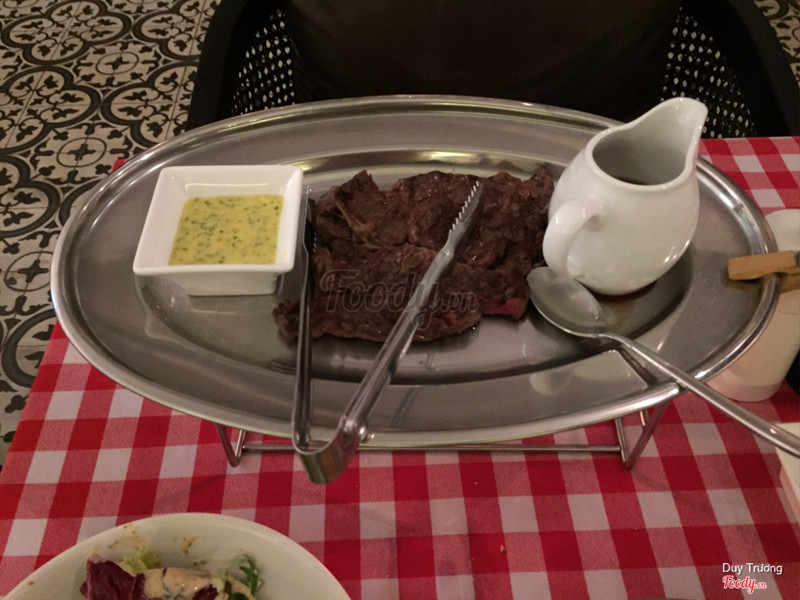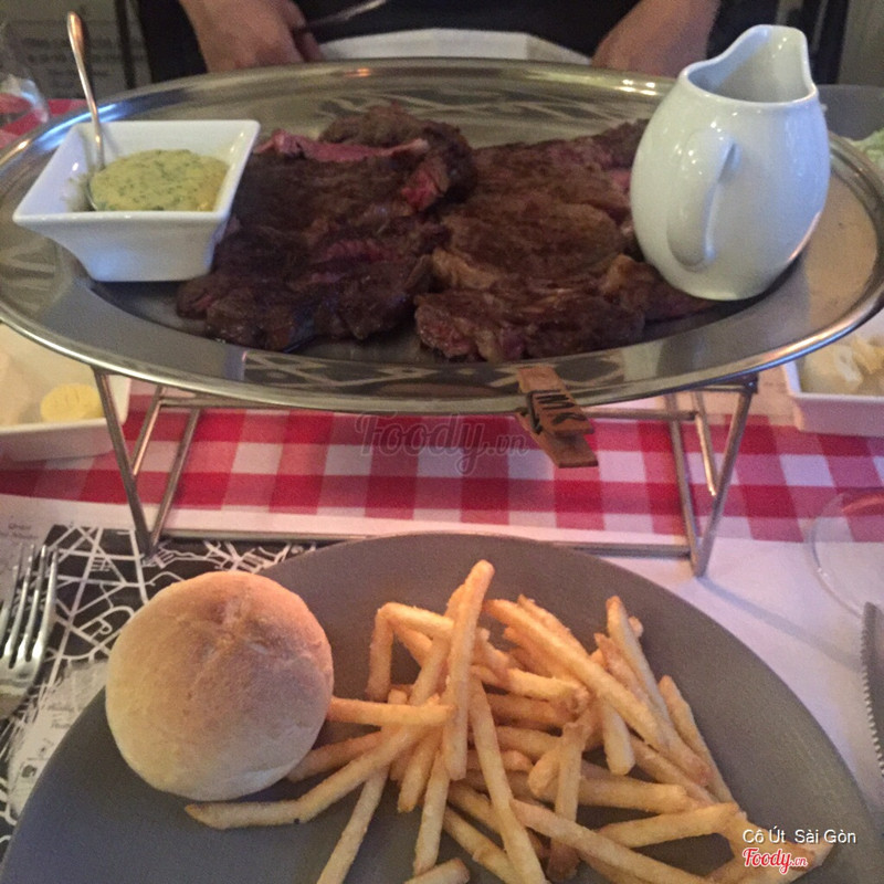 8.0Saigon's LookoutDạng steak frites này đầu tiên có ở SG luôn, giá ở đây là 275k/ trưa và 350k/ tối. Giá đã bao gồm thuế và phí phục vụ rồi nghen. Trưa thì ăn rẻ hơn mà lợi hơn, 1 phần trưa 200gr bò + khoai refill + salad bánh mì + tráng miệng + trà/ cafe. Chưa kể đang có tặng voucher free steak cho lần sau. Không gian quán sang trọng, phục vụ cũng tốt. Khoai dạng khoai chiên kfc nên hơi chán, bù lại khoai lúc nào cũng nóng giòn. Bánh mì nóng giòn ngon. Salad ăn chua chua béo béo ít ngán, không có salad là ăn ngán chết luôn ah. Bò mềm, ăn xong no lăn không nổi luôn, sốt cũng ngon. Tráng miệng thì hơi ngọt, cafe latte cũng ngon, tóm lại hình như món gì cũng ngon :))) ...Xem thêm
