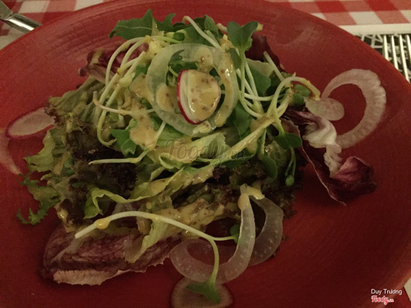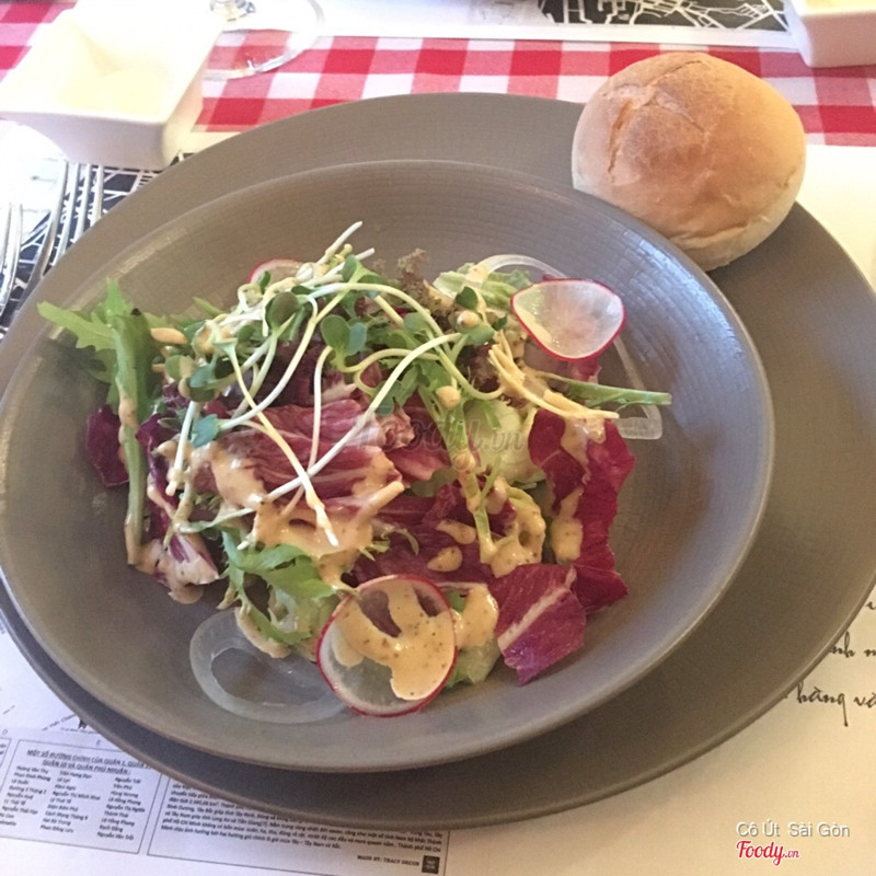 7.4Saigon’s Lookout - Steak FritesGhé lại để xài voucher trước khi hết hạn. Cảm nhận là lần này ngon hơn hẳn lần trước, phục vụ cũng khéo hơn. Bò mềm ngon, đúng độ medium rare mình yêu cầu. Khoai tây chiên thơm, dù mình vốn không thích khoai chiên nhưng thấy OK. Salad ngon lắm luôn, dressing vừa miệng cực kì. Phải chi nhiều rau arugula thêm nữa thì hoàn hảo. Bánh mì không ngon, bơ cứng và mình cảm thấy sự hiện diện của miếng bánh mì này không cần thiết trong menu. Giá nước cao. ...Xem thêm