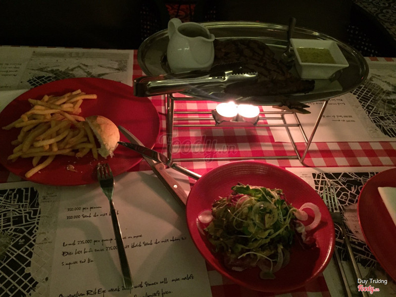 6.8Saigon’s Lookout - Steak FritesHôm kỉ niệm anh ny dẫn đến đây , không gian rất lãng mạn và ấm cúng , nhân viên rất chu đáo liên tục hỏi bạn có muốn refill salad , khoai tây hay không . Steak thì quán chỉ bán đúng một loại thôi , có điều là mình và anh ny muốn ăn tái thôi nhưng lại chín qá!! ...Xem thêm