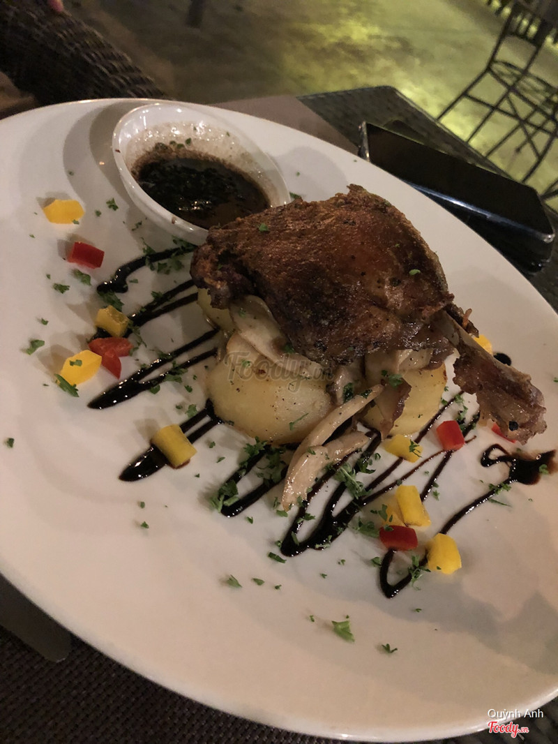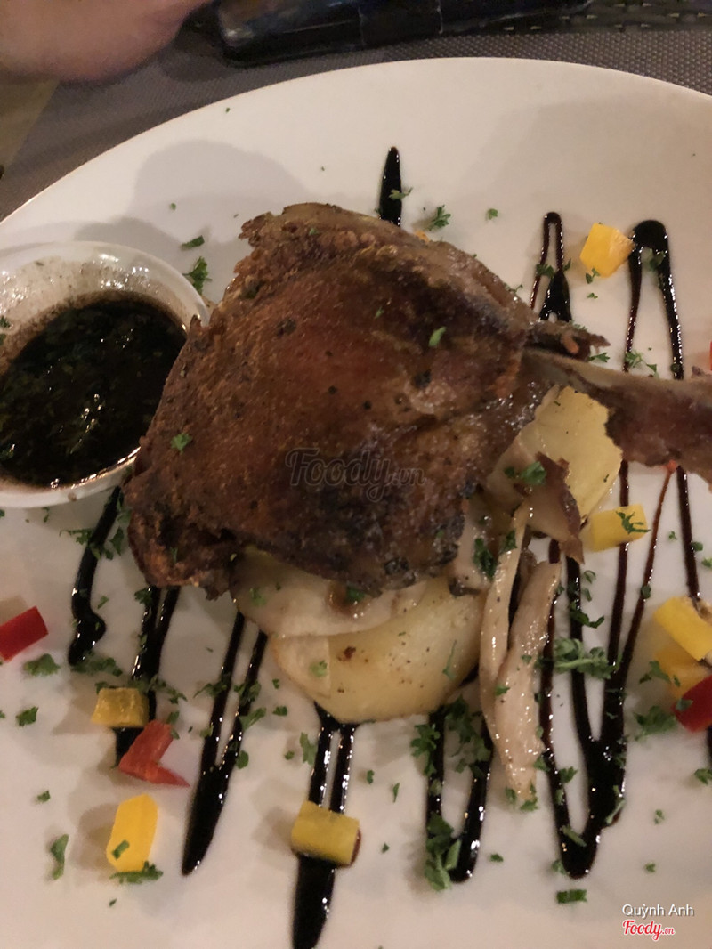 6.0Chưa hài lòng lắmQuán nằm mặt tiền đường Trần Ngọc Diện, dễ tìm, đường không nhiều xe đi lại như Xuân Thuỷ nên rất dễ đậu xe (kể cả xe hơi). Quán có 2 mặt, phần mặt tiền là tiệm bánh, sau tiệm bánh là quán Âu, có trong phòng lạnh lẫn sân vườn. Đầu tiên là về phục vụ, lúc mình đến cũng giờ ăn tối, quán chỉ có 2 bàn, nhân viên rất đông, nhưng lại đẩy 1 bạn nhân viên ngừoi nước ngoài ra. Còn các bạn khác cứ đứng ở trong thôi. Bạn nv này chưa lành việc, khá hiền, không nắm rõ món ăn của nhà hàng, nên cứ hễ mình hỏi gì lại chạy vào hỏi các bạn kia. Món ăn đa dạng, nhưng menu chữ nhỏ, ánh sáng không đủ để đọc. Món ăn lên chậm. Mình ăn khá nhiều món, nhưng không ấn tượng với món nào cả. Món cá mình thấy bình thường, hơi chua. Steak một phần giá gần 400k, mà phần ăn nhiều gân, nhỏ hơn các quán khác, tóm lại, món này là mình thất vọng nhất dù đắt nhất. Đùi vịt nướng ăn ổn, hơi khô một tí nhưng thịt dai, chắc. Các bạn xem bill của mình sẽ thấy giá khá cao, 3 người ăn, với chất lượng như vậy thì mình không hài lòng. Nghe nói tiệm bánh ngon lắm nhưng chưa thử, nếu có quay lại mình chỉ dùng bánh thôi, quầy bánh to và nhiều loại nhìn thích lắm. ...Xem thêm