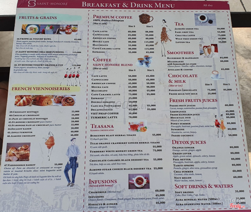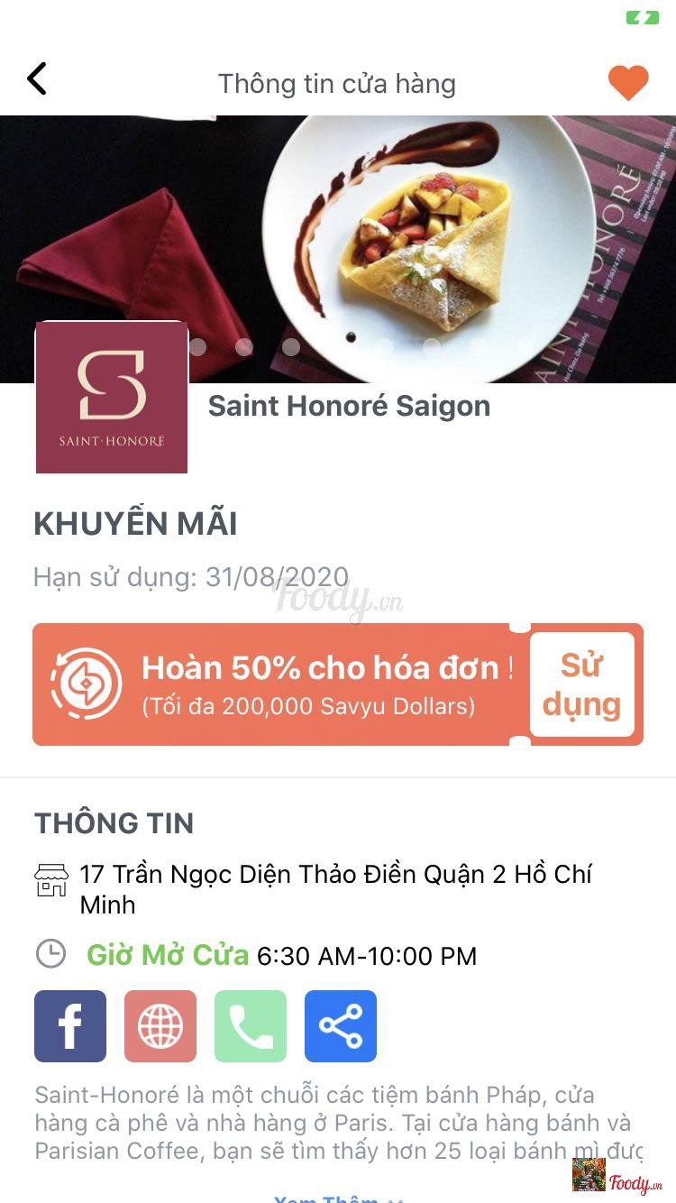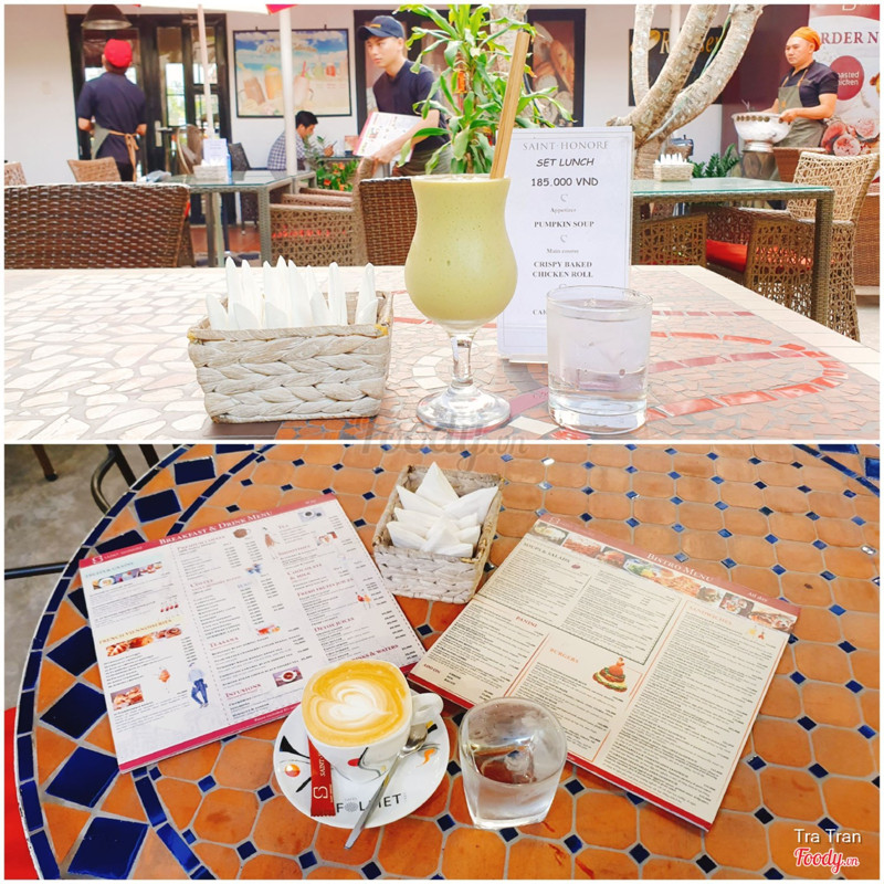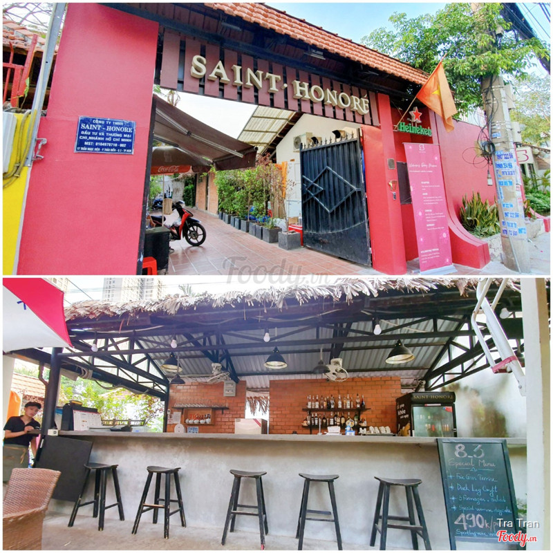 7.8Saint Honore - Ẩm Thực Pháp - Trần Ngọc DiệnSaint Honore 17 Trần Ngọc Diện, phường Thảo Điền, quận 2 Pass wifi: enjoythemoment Quán nằm gần khu phức hợp ẩm thực BLOQ. Mặt bằng rộng, chỗ để xe máy khá dài, chắc xếp đc hơn 20 xe. Quán chuyên bánh ngọt mà mình vào toàn uống với ăn bữa lửng. Đồ uống không có gì xuất sắc. Mình đã thử Parisian Chocolate, Turmeric Latte và Avocado & Coffee. Cà phê bơ mà nhân viên quên cho cà phê vào nữa. Bữa lửng Brunch Board bày biện bắt mắt ăn được, đợi hơi lâu. Giá có thêm service charge và VAT. Quán có nhiều mèo hoang tới xin ăn, chủ muốn đuổi hết đi vì sợ ảnh hưởng tới kinh doanh. Mình thì nghĩ làm ăn được nên tạo phúc, tiếc gì mèo hoang tí đồ ăn thừa. ...Xem thêm