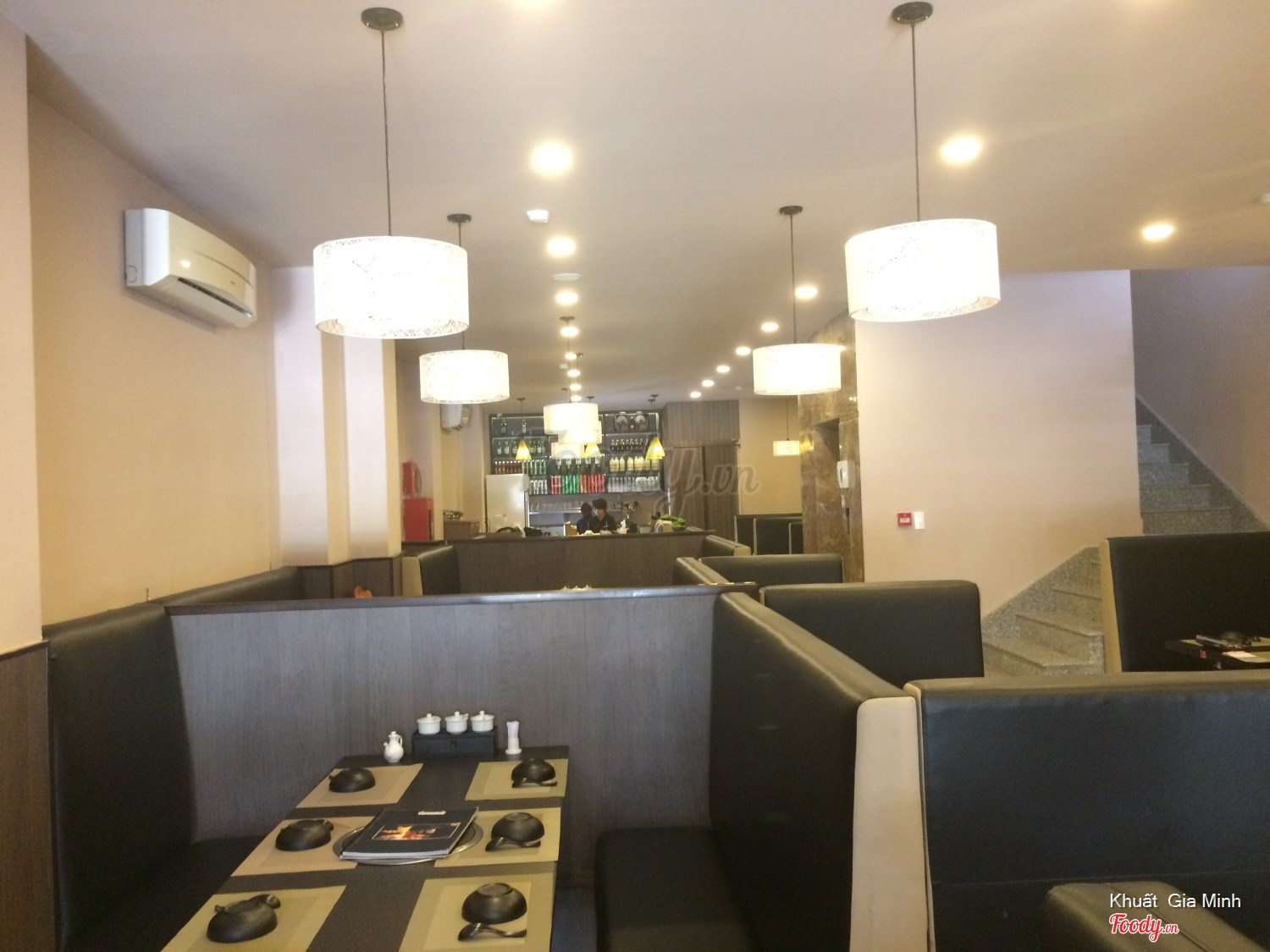 Tầng trệt. Quầy lấy salat, chả giò, sốt, khoai, kem,... mấy cái lặt vặt