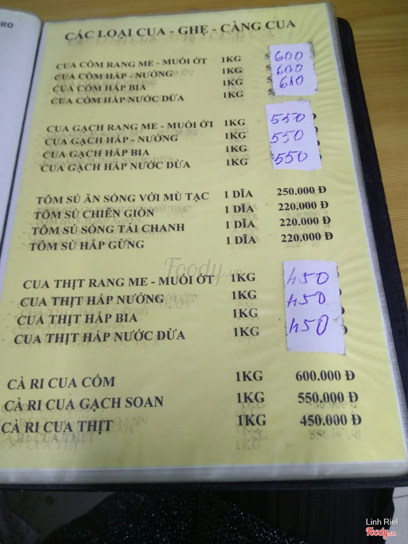 3.4Không hẹn gặp lại!Nghe bạn bè giới thiệu nên đi ăn thử. Nói chung gia vị nêm nếm vừa ăn, hải sản thì tươi nhưng giá quá đắt. Cua cốm 500k/1kg mà mắc cười ở chổ, nếu kêu 1 con thì không làm được món nào khác ngoài nướng đơn giản.... Nhưng nếu kêu 2 con thì được... làm tận 2 món (mỗi món một con) phức tạp như rang muối, rang me,..... ngộ thiệt! Mình thấy chú ghi món chơi ép khách quá! Bàn nào order 1 con đều bị nói như thế! Sẽ không quay lại cho dù quán có ngon thế nào đi nữa! ...Xem thêm