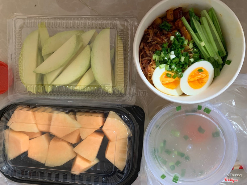 7.6Tươi ngon, sạch, giá hơi caoOrder trên now lúc quán khuyến mãi. - xoài: mình có note lựa giòn ngọt, ko biết vô tình hay cố ý, hộp xoài này cũng vừa ý lắm (giòn, ko chua, nhưng ko quá ngọt) - dưa lưới: tươi sạch ngon, ko quá ngọt. - mì trộn tóp mỡ: nhìn sạch đẹp, hợp vệ sinh, bắt mắt. Nêm nếm cũng được, nhưng tóp mỡ làm kiểu này hơi ngán. Có kèm súp xương củ quả rất chất lượng, mỡ nổi lềnh bềnh luôn. Điểm trừ là giá hơi cao tí (có km thì được hơn) và muối ớt ko được ngon. ...Xem thêm