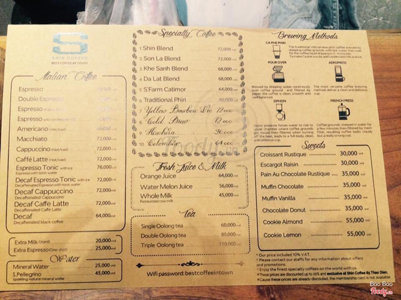 7.0Shin CoffeeQuán nhỏ nhưng khá ấn tượng, chất lượng cafe thì ổn, nhưng ko hiểu sao quán đóng cửa quá sớm mới 7g30 là đưa bill cho mình và nói là 8g quán đóng cửa..Service nên cải thiện 1 tý. ...Xem thêm