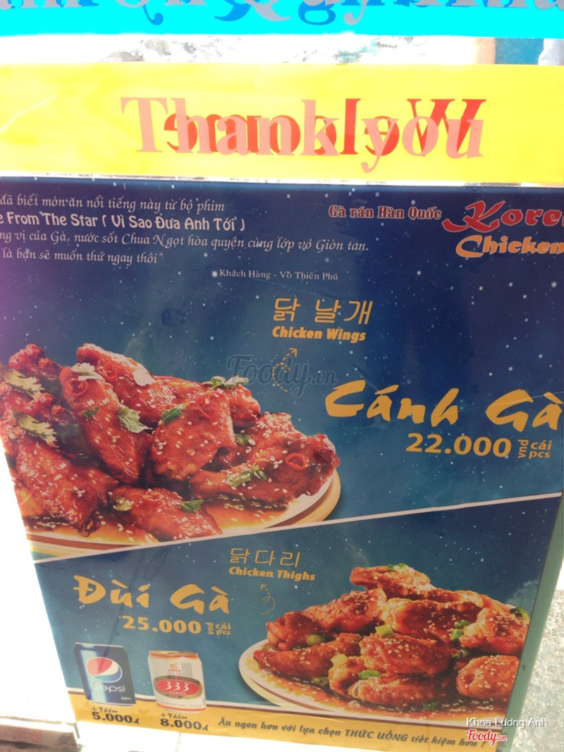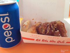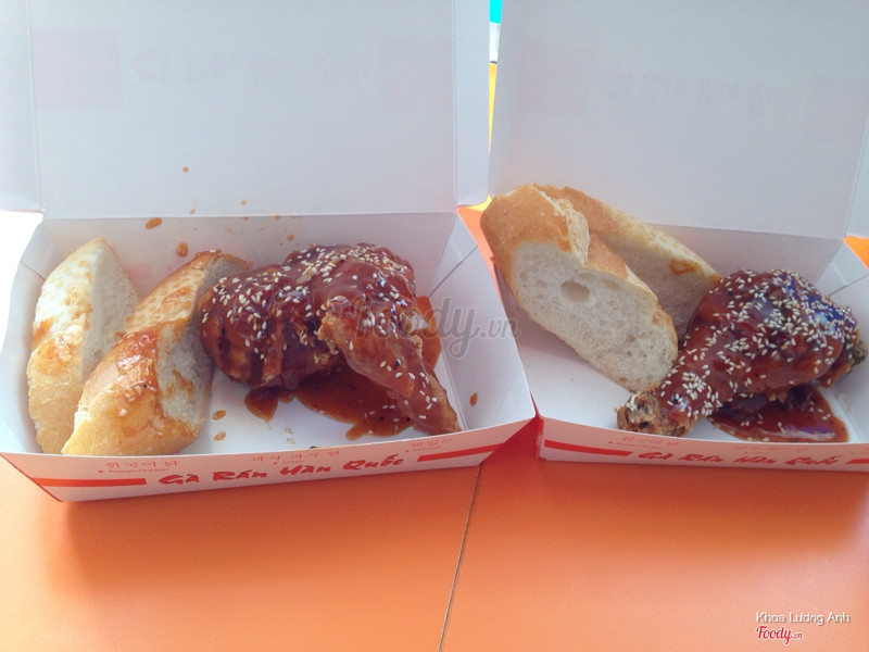 7.6Gà rán Hàn Quốc sốt chua ngọt!!Shop n Go mới vừa ra mắt sản phẩm gà rán HQ sốt chua ngọt khá là thú vị: Hiện tại mình chỉ mới thấy bên cửa hàng Điện Biên Phủ gần đại học Hutech bán món này. Bên này có khoảng 4-5 chỗ để ngồi lại ăn. Một phần đùi giá 25k còn cánh là 22k. Gà chiên lớp da bên ngoài giòn tan, lớp sốt chua ngọt bên trên ăn rất vừa miệng. Ăn chung với gà rán như vậy giảm hẳn cảm giác ngậy và ngán. Mua phần này được kèm giá ưu đãi cho nước uống, nước ngọt chỉ có 5k còn bia 333 là 8k. Khá là hấp dẫn!!! ...Xem thêm