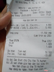 5.0Siêu Thị Auchan - The Garden MallNhân viên quá tệ k chào hỏi khách, tự động thối thiếu tiền khách mà k hỏi ý kiến khách rất bực bội. Tổng bill thối là 33.000 mà nhân viên không có tờ 1.000 thối tôi 32.800. ...Xem thêm