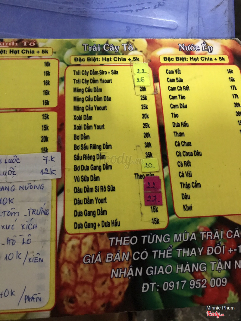 7.8🍊 SINH TỐ 33 VẠN KIẾP 🥑Mình đi ăn cùng bạn trai cách đây khá lâu rồi do đi bộ nên 2 đứa không bị lăn tăn vấn đề gửi xe các kiểu . Bị ấn tượng em nhân viên_nam cao đen đen nói chuyện duyên dáng lắm nha . Mấy bạn chú ý khách kêu gì lắm đó . Đi 2 ngày liên tiếp luôn và mình bị mê bánh flan 7k ở đây , béo béo mịn và dễ gây mập nha 😂😂 Trái cây tô thì nhiều , trái cắt đa dạng ăn kèm 1 hũ yaourt 🌸 Có xe cá viên đồ kế bên nữa !! ...Xem thêm