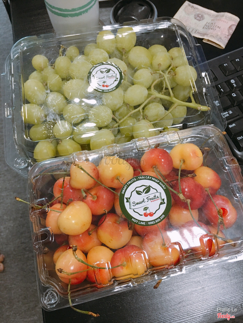 7.8Smart Fruits - Trái Cây Nhập Khẩu - Nguyễn Thiện ThuậtTrái cây ở đây tưới và ngon. Được đóng trong hộp nhựa trong suốt khá sạch sẽ, nhìn vào sẽ thấy ngay trái dập hay không. 2 hộp này được bạn cho nên mình cũng không rõ giá. Cherry ăn hơi chua tí thôi nhưng mình thích ăn chua nên oke, nho ngọt ăn bao thích. ...Xem thêm