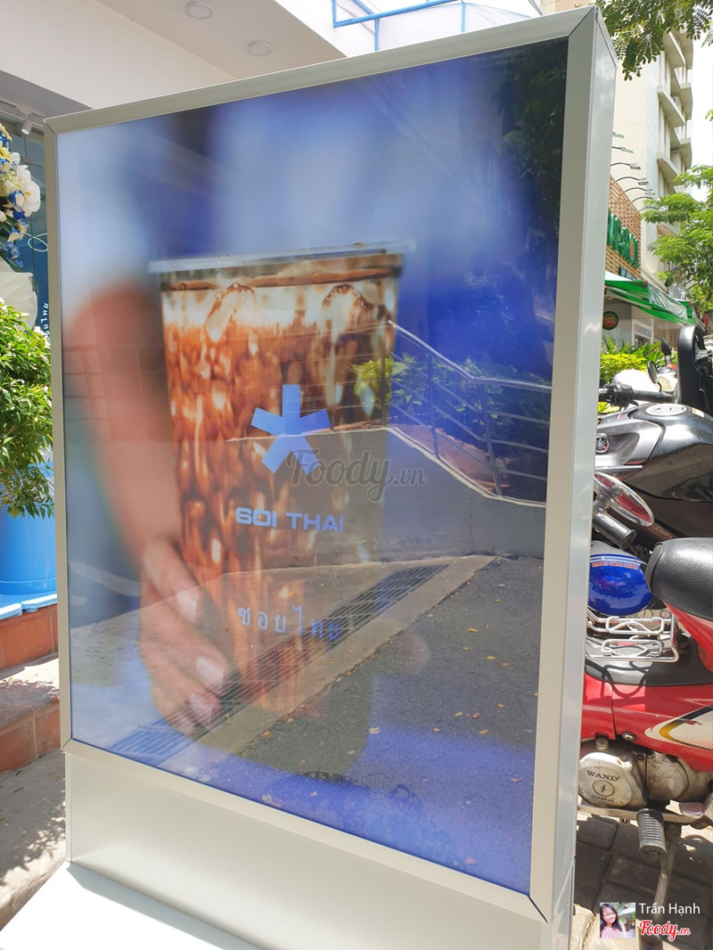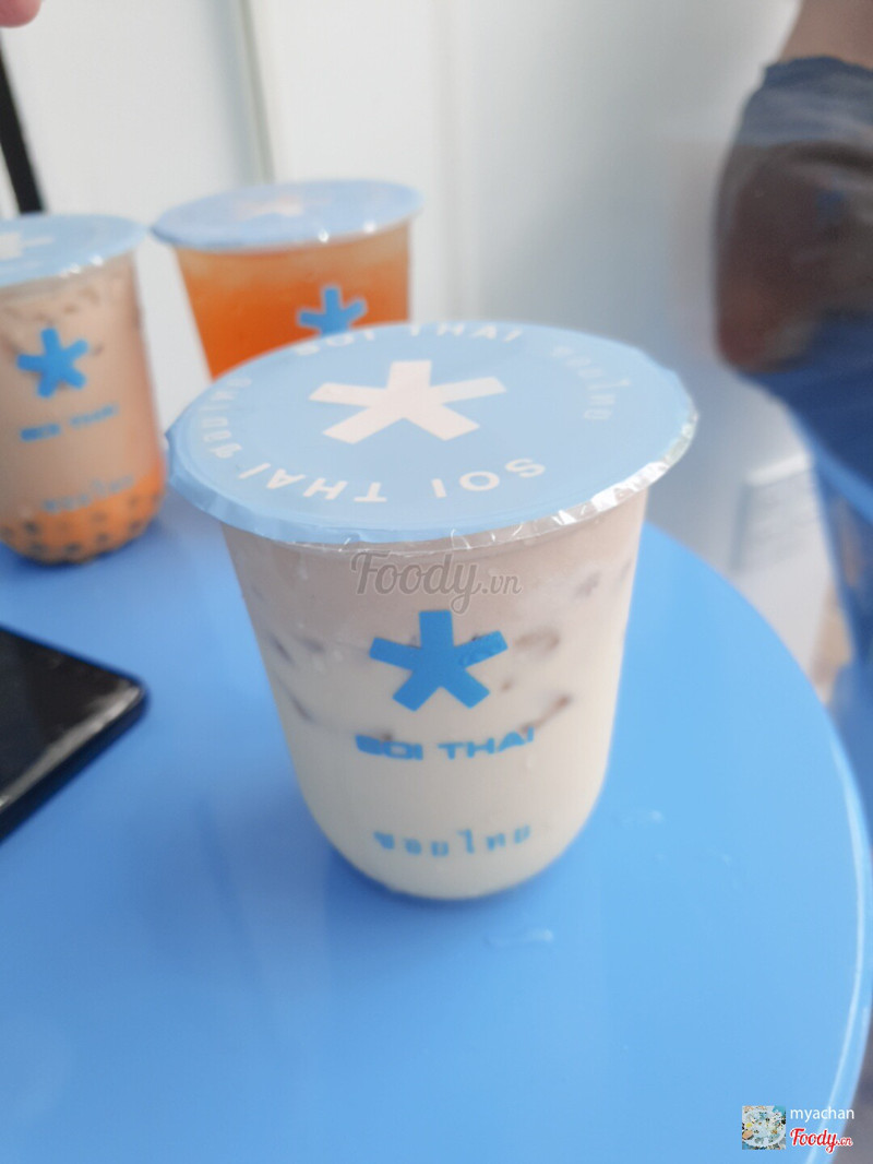 8.2Trà Sữa Soi Thai -***Đi cùng bạn ngay hôm đầu khai trương của quán, có rất nhiều chương trình khyến mãi hấp dẫn mà chắc do quán ở quận 7 hơi xa nên lúc mình và bạn tới cũng hơn giờ bắt đầu tầm 10p nhưng vẫn kịp nằm trong top 10 khách đầu tiên. nhận xét đầu tiên là quán nhìn nhỏ nhỏ xinh xinh, nằm ở khúc đầu đường nguyễn- đức- cảnh, từ nguyễn- văn- linh- vào thì quán nằm bên phải, ngay ngã 4 đầu tiên luôn. tiệm nhỏ xinh, nhìn đáng yêu với tông màu baby blue và white, nhỏ thui, bên trong có tầm 6 bàn, tông màu vẫn là xanh trắng đáng yêu, decor tường cũng chăm chút và có gout riêng. vì có nhiều chương trình khuyến mãi nên order hơi bị lâu, chế biến còn lâu hơn, m đợi gần 45p mới có đủ món ấy. đồng giá 10k 1 ly bất kỳ size M trong menu, được tặng thêm 1 bill 1 món ăn mặn hoặc ngọt, được quay số free topping nữa. m order trà đào, trà sữa trân châu trứng muối, sữa tươi trân châu trứng muối, trà sữa caramel, xôi xiêm xoài, bánh lava kem phô mai. ly cung xinh xinh, xôi và bánh thì đựng trong khay giấy nhìn lịch sự, sạch sẽ. trà đào hơi ngọt, ngon, trà sữa trứng muối vị cũng lạ lạ, ổn, các món đều hơi ngọt xíu, nên giảm đường nha. xôi ngọt, nước cốt dừa ngọt, xoài chua, m thích độ ngọt của xôi, bánh lava mà nhìn như bông lan ấy, cream phô mai thì bình thường à, có trân châu nữa. nhân viên cũng nhiệt tình, chắc mới mở nên còn hơi lóng ngóng ...Xem thêm