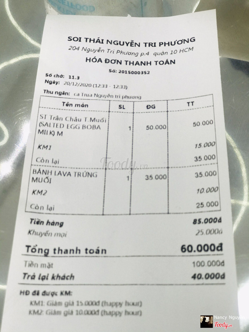 7.0Trà Sữa Soi Thai -***Đi ngay khung happy hour nên được giảm giá các món. Sữa tươi trân châu trứng muối, bánh lava trứng muối, rõ hương vị trứng muối nhưng đều ngọt quá. Không tệ nhưng hợp với ai hảo ngọt hơn. ...Xem thêm