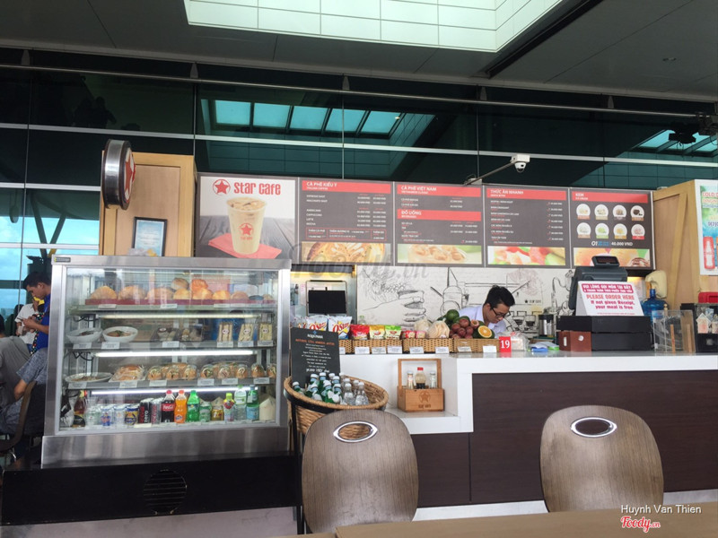 7.8Star Cafe - Trường SơnStar coffee có 1 quầy nhỏ nhỏ ngay mặt tiền, chỗ cổng ra vào đi quốc tế. Vì không khí sân bay đông người xô bồ quá, nên bụi bám hơi nhiều lên mấy hộp bánh trưng trên kệ. Cà phê sữa đá Việt Nam pha ngon, chuẩn, đậm đặc, đậm hơn cả Highlands luôn. Có nhiều món bánh mì trưng trong tủ kính lạnh, nhưng thấy để lâu quá hay sao mà nó khô khô nên thôi ko ăn. Nhân viên tốt, thân thiện. Bàn ghế ngồi lại cũng thoải mái, chỉ có điều là sân bay đông đúc quá thôi ...Xem thêm