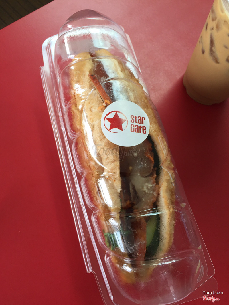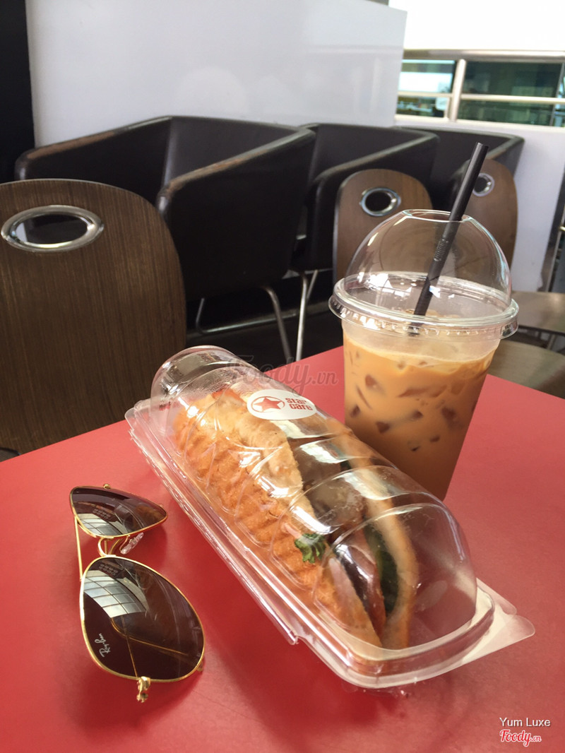 7.0Star Cafe - Trường SơnTrong sân bay ngồi đợi cất cánh cũng có star cafe. Nói thật không gian nóng quá luôn í, hầm hầm khó chịu vô cùng. Mình gọi 1 phần bánh mì cuộn gà và phô mai: bánh khô ăn ngán, nhưng được cái sốt gà ngon. 1 phần crossant thịt nguội phô mai: cái này ăn được nè, dễ ăn. ...Xem thêm