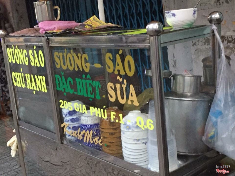 6.2Sương Sáo Chú HạnhCó 2 chọn lựa là sương sáo với nước đường 5k 1 chén & sương sáo với sữa 8k 1 chén. Hong có hạt é nha. Quán khá vắng. Nằm ngay ngã tư Gia Phú - Bình Tây. Có vài ghế để ngồi ăn tại chỗ. Sương sáo khá nhiều, mát lạnh, với mình thì sữa hơi ngọt. Nhưng với giá như vậy thì cũng không đòi hỏi gì nhiều thêm. Khá ổn để ăn vào mấy hôm trưa nóng. ...View more