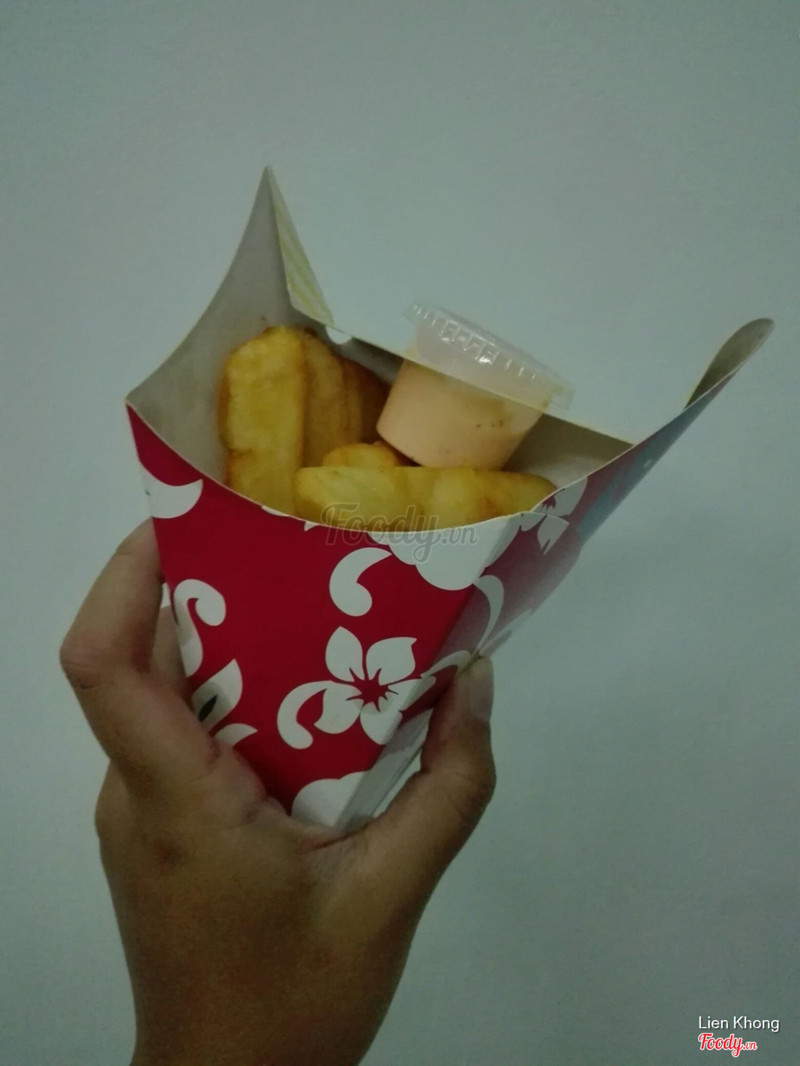 7.8Surf'n' Fries - Best Fries In Town - Lạc Long QuânBữa mình có nghe nói chả cá cuộn rong biển ngon và khoai tây ở đây khá nổi tiếng nên ghé ăn thử. Mình gọi 1 phần khoai nhỏ, 1 chả cá, 1 7up, bill chắc tầm 130k. Chả cá ăn ok nhưng k quá ngon như minhg nghe nói, khoai tây cũng ok, lạ hơn 1 số chỗ nhưng chưa đến mức ngon nhất thế giới :( ...Xem thêm