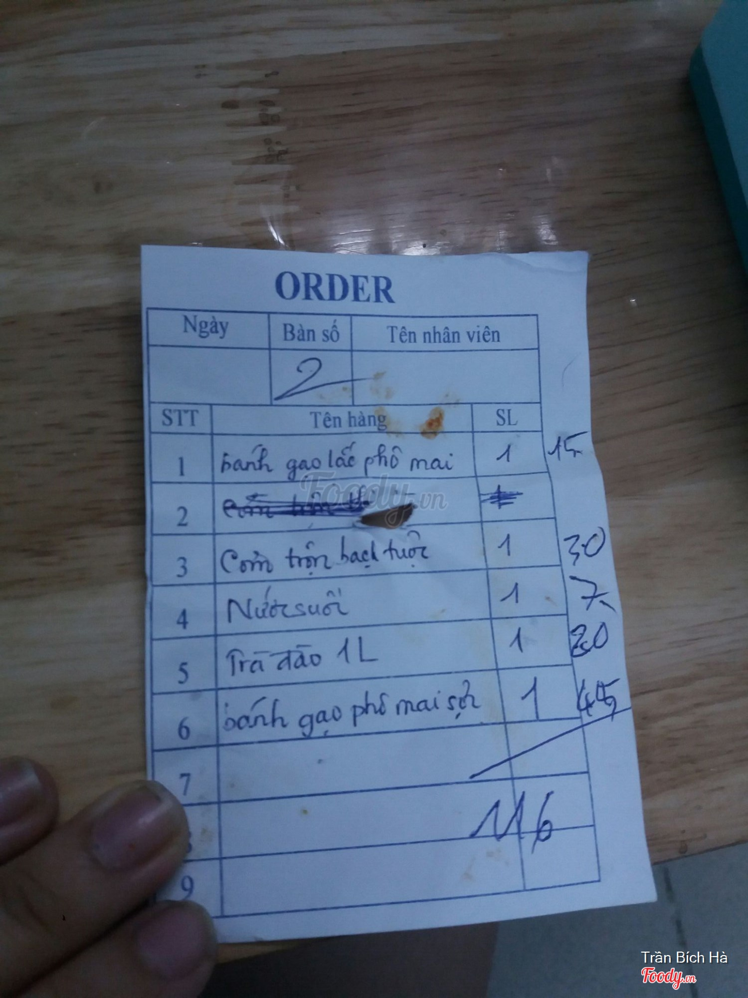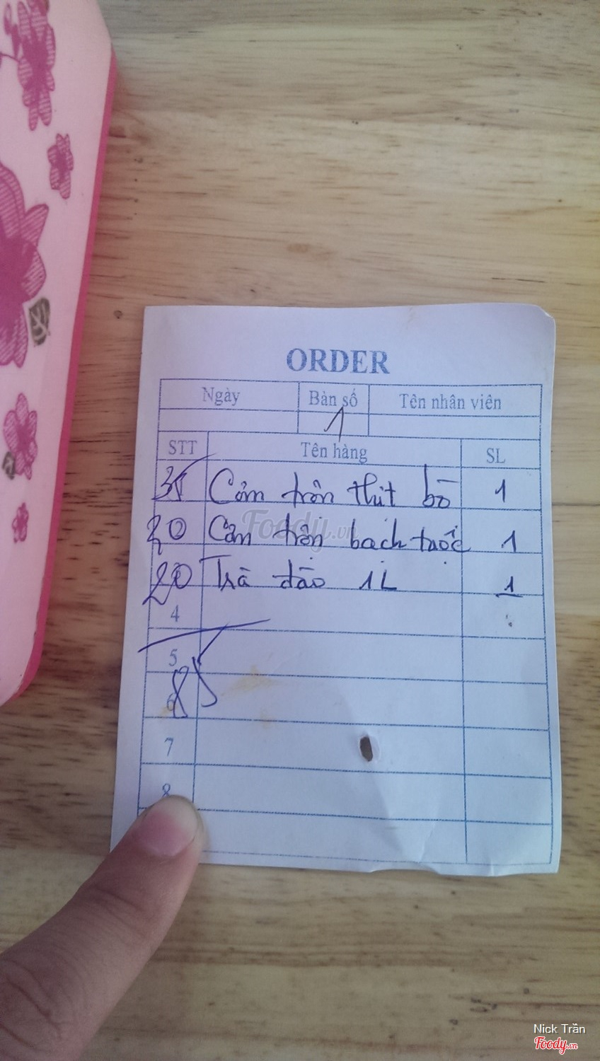 Ghi chú đặt bàn