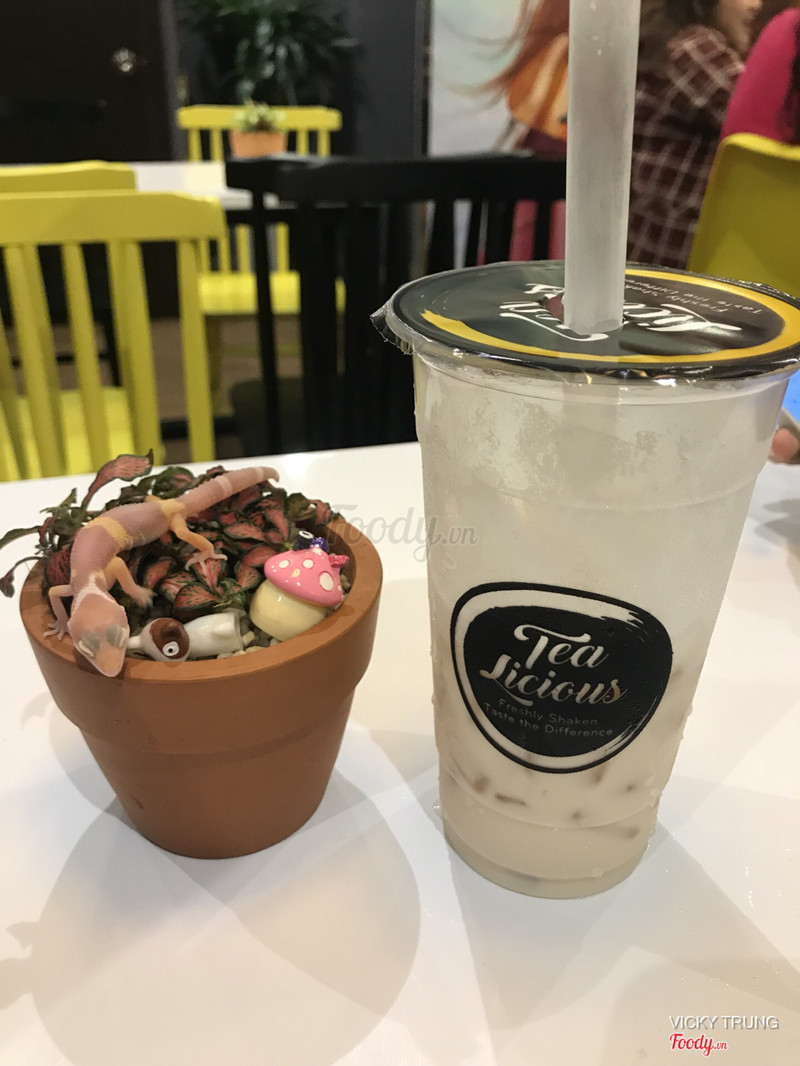8.8Uống khá ổn!Đây là lần đầu mình uống tại Tealicious Taiwan Tea House do mình cũng mới biết quán gần đây thôi mặc dù mình sống ở chung cư gần đó, rất gần nhà luôn. Không gian quán rộng rãi, trang trí, decor tuyệt đẹp và dễ thương. Nhân viên nhiệt tình, thân thiện, dễ thương, phục vụ cực kì tốt! Do hôm đó mình đang thèm Sữa tươi trân châu đường đen cho nên vào quán thử món này trước. Ly rất đẹp có nhãn mác đàng hoàng, nhìn rất vui mắt, được bỏ bịch rất gọn gàng. Phần sữa tươi ngon, béo và thơm, rất hài lòng (Hình như quán sử dụng sữa Barista). Quán sử dụng trân châu đen, trân châu vừa dai vừa mềm nhai rất vui miệng, nhưng tiếc là trân châu chưa thấm được mùi đường đen. Mình thấy họ múc trân châu trước xong mới đổ nước đường đen vào. Có lẽ quán không ngâm trân châu trong đường đen mà để riêng nên chưa thấm? Cũng có lẽ vì vậy mà Sữa tươi trân châu đường đen ở đây khá ngọt đối với mình, uống hết sẽ khá ngán. Mình mong quán khắc phục điểm này. Nhưng không sao, với mức giá 25k thì cũng là rất ngon rồi! Chắc chắn sẽ quay lại để thử trà sữa của quán! ...Xem thêm