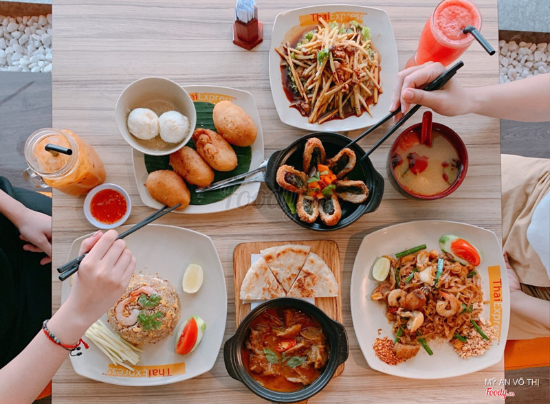 8.2Đồ Thái best nhất HCMMình là một đứa rất thích ăn đồ Thái, và đi đâu quanh quẩn ăn đồ Thái rồi vẫn thích nhất là Thai Express. Vì công ty mình ngay gần đây nên buổi trưa thi thoảng sẽ ghé đây ăn để đổi gió hay lên cơn thèm món Thái. - Về đồ ăn: + Pad Thái hải sản-best seller vừa đơn giản vừa dễ ăn, sợi mì dai dai, vị vừa miệng. + Tom yum hải sản: nước tom yum vừa miệng, nhiều hải sản, tuy nhiên 1 phần thì khá bé. + Cơm chiên hải sản: có mùi mắm ruốc gì đó đặc trưng của Thái, vừa miệng, 1 phần chắc 2 người ăn là hợp lý + Cà ri bò (không nhớ có đúng tên không): bò mềm, nước bò chấm với bánh gì đó tròn tròn ăn đưa đẩy cực kì + Chả tôm bọc trứng bắc thảo: must try nha mấy mẹ, 2 món tui ghiền kết hợp cùng với nhau ăn lạ mà siêu ngon. - Không gian: lịch sự, phong cách đơn giản, nói chung không đặc sắc mấy. - Nhân viên: dễ thương, nhanh nhẹn - Giá: ko thích hợp để trưa nào cũng ăn nhg sẽ ổn để thi thoảng ăn trưa/tối cùng đồng nghiệp hay đối tác, giá rẻ hơn nhiều so với các NH Thái khác, khi đến là có bàn xếp sẵn rồi, chỉ cần đưa tin nhắn có code giảm giá với nhân viên là được giảm 20% tổng hóa đơn luôn nha ...Xem thêm