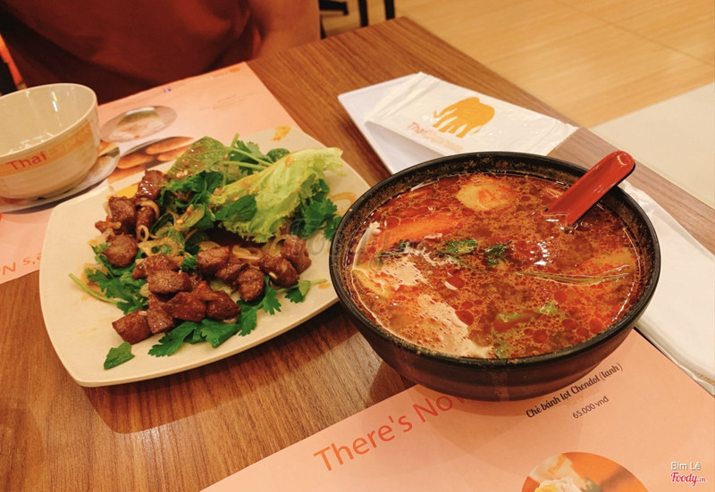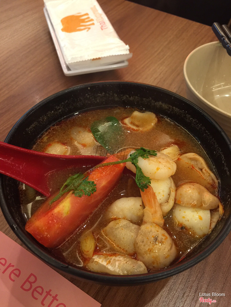 6.2ThaiExpress - Vạn Hạnh MallĐi buổi trưa trong ngày thường mà quán cũng khá đông. Mình gọi 5 món với 3 người ăn thì khá là no: - Tomyum đỏ hải sản: ngon, chua chua, khá nhiều topping -Mực trứng muối: mực mềm, nêm nếm vừa miệng. Tuy nhiên, lớp xốt là trứng gà luộc chứ không phải trứng muối. -Pad thái: tuyệt vời, mình khuyên mọi người nên thử món này. - Miến hải sản: theo khẩu vị của mình thì vị hơi kì, khuyên là không nên gọi món này - Gà lá dứa: gà nêm vừa miệng, khá ngon -Trà xả: khá thơm mùi xả ...Xem thêm