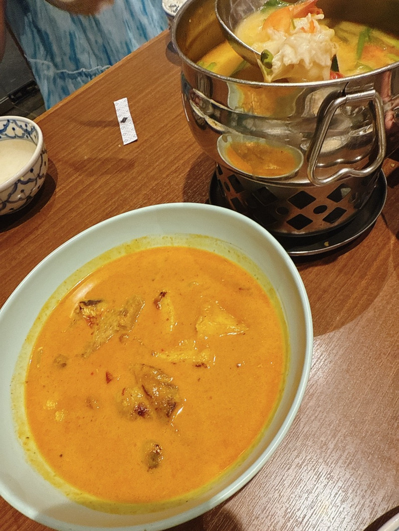 3.6Thai Market Restaurant - 95***Giá không rẻ nhưng thật sự đồ ăn rất ít lại không ngon ! Phần cari bò trong hình 238k chưa thuế nhưng chỉ đc 3 miếng bò nhỏ như ngon tay cái ! Và 2 cục khoai lang ! Nước cari thái thì ngọt như sữa đặc thua ở nhà nấu! Phần canh tomyum thì có đúng 1 con tôm và 2 khoang mực mỏng tanh ! Ăn không tươi có mùi mềm mềm nữa ghê lắm , tránh chổ này nghen mọi người ! ...Xem thêm