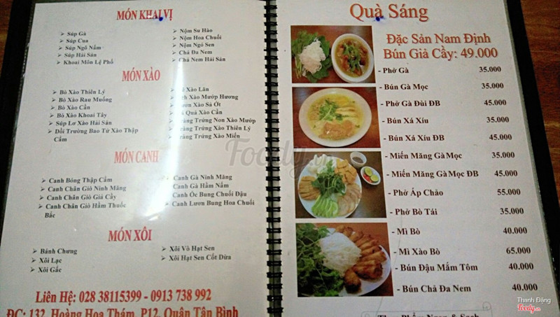 9.4Quán ănMột quán ăn vị Bắc tại một con đường nhỏ quận Tân Bình, 110 Lê Trung Nghĩa, phường 12. Tại đây có thể gọi món ăn, món nhậu (phong vị Bắc). Từ ăn sáng (miến, bún, phở, mi,...), cơm (đủ món: rau, mặn, xào, cánh,...) đến các món nhậu. Món nào cũng phong phú về chủng loại và đa dạng cách chế biến. Thức uống cũng nhiều lựa chọn như nước ép, nước hoa quả ngâm, trái cây, nước ngọt và tất nhiên, không thiếu các loại bia (chai cũng như lớn). Quán rộng rãi, thoáng mát, nhân viên thạo việc và nhiệt tình. ...Xem thêm