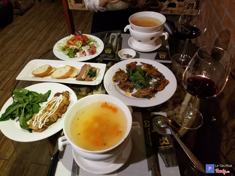 6.8Hầm rượu vangCửa vào và bảng tên nằm khá khuất nên hơi khó tìm. Bạn đến cổng sẽ có nhân viên hướng dẫn xuống hầm. Không gian ấm cúng, hơi chật. Phong cách châu Âu cổ điển nên mình cũng đi thử 1 lần cho biết. Khách có thể chọn uống vang đỏ hoặc vang trắng tùy thích. Thức ăn trình bày ổn, vị bình thường và đặc biệt rất nguội lạnh. ...Xem thêm