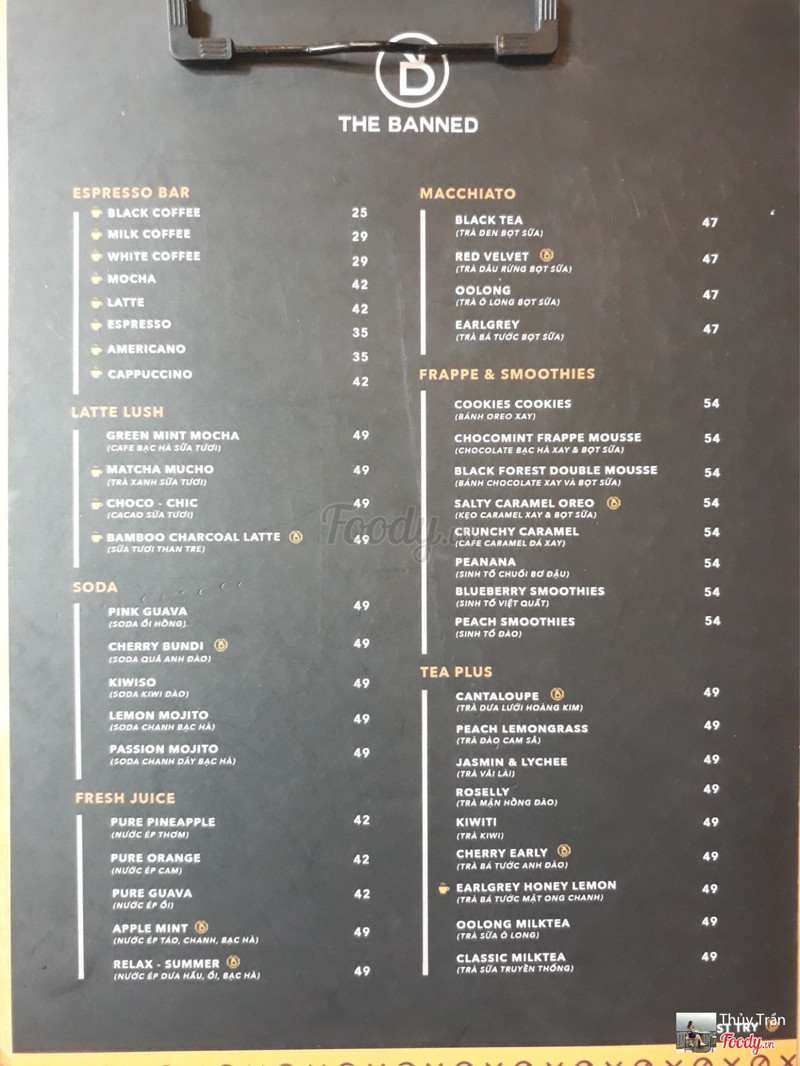 8.2The Banned Coffee -***Mình ghé đây với 2 đứa em, chỗ này từng đi cách đây cũng lâu. Không gian ko thay đổi j so với lúc trước. Gửi xe bên mảnh sân rộng bên ngoài quán, có bảo vệ. Bên ngoài là khu ngồi luôn, buổi tối đông đúc lắm. Bên trong là không gian mở, rộng rãi, cao và thoáng, tông màu đen, trang trí đơn giản, nhiều chỗ ngồi, sức chứa lớn, có ổ điện nhiều, thích hợp làm việc. Mình order sinh tố việt quất, roselly tea, trà kiwi, bánh mì phô mai tan chảy. Tầm giá trung bình với các quán khác. 3 món nước đều có chất lượng khá, trân châu trắng ngon, bánh mì phô mai ấm ấm, phô mai bên trong nhiều, không quá ngấy, ngon. Nhân viên lễ phép,nhiệt tình. ...Xem thêm