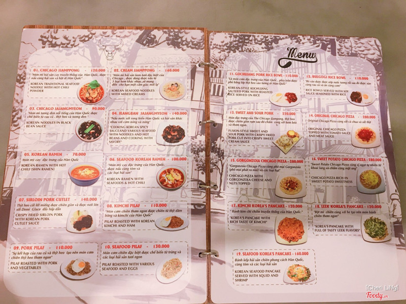 8.0Đa dạng món HànThiệt tình là mới biết chỗ này, ban đầu nghe tên cứ tưởng là được ăn món Chicago, ai dè là ăn món Hàn. Mình nghĩ là đi ăn ở đây thì nên đi đông người nha, ăn nhiều món share ra cho ngon. Tại vì ở đây kế bên Bitexco nên giá hơi cao một tí xiu. Thích nhất là cái bánh chua ngọt với thịt rán. Thịt để lâu vẫn còn giòn lắm nha, Thịt giòn mà ăn nhai đã gì đâu không á. Đặc biệt nhất là cái sốt chua ngọt đi kèm nằm trong ổ bánh, chấm thịt ngon kinh khủng. Chua chua ngọt ngọt. Ngoài ra còn có cơm Hàn, mỳ tương đen ăn cũng ngon chuẩn vị Hàn lắm. Nên sau này có thèm món Hàn thì qua đây ăn tiếp. Cũng tiện vì ngay trung tâm mà. ...Xem thêm