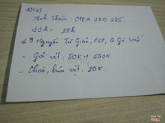 Ghi chú đặt bàn