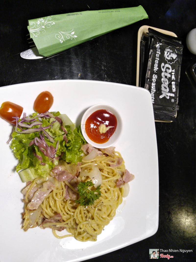 7.4Giá rẻ hơn các nhà hàng Steak (tầm 150k đổ lại), thức ăn ngon- Giá cả: mì ý thịt xông khói sốt phô mai và nấm 75k, bò lúc lắc, beef steak sốt chua cay không lầm cũng là dưới 100k - Khẩu vị: mì ý thịt xông khói sốt phô mai và nấm ngon - Không gian: phù hợp ngồi đối diện. Lên món hơi lâu. ...View more