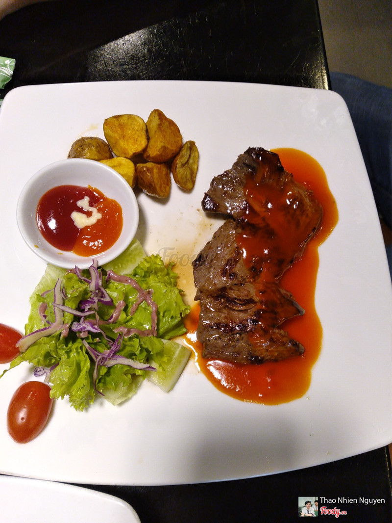 8.2Beefsteak sốt phô maiHôm bữa mình gọi 1 phần beefsteak tầm 70 - 80k gì đó, vậy là cũng phải chăng so với số lượng và chất lượng đồ ăn. Chỗ này lạ cái là gọi steak thì không hỏi độ chín tái như nào, cơ mà ăn thấy ngon lắm nha, bò mềm mềm, vừa vặn, không quá tái quá chín. Mình chọn sốt phô mai, lựa chọn rất là đúng đắn luôn vì ăn béo, mặn vừa, túm lại là ưng. Bánh mì ăn kèm cũng ấm nóng, ngọt nhẹ, ngon. Có cái là khoai tây đi kèm hơi mặn xíu. Không gian cũng tạm được, không quá đặc biệt hay sang chảnh, hợp tụ tập nhóm bạn hoặc hẹn hò tiết kiệm:)) Phục vụ cũng okelah. Bữa nào sẽ rủ bạn bè đi oanh tạc chỗ này. ...View more