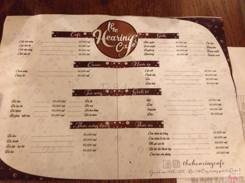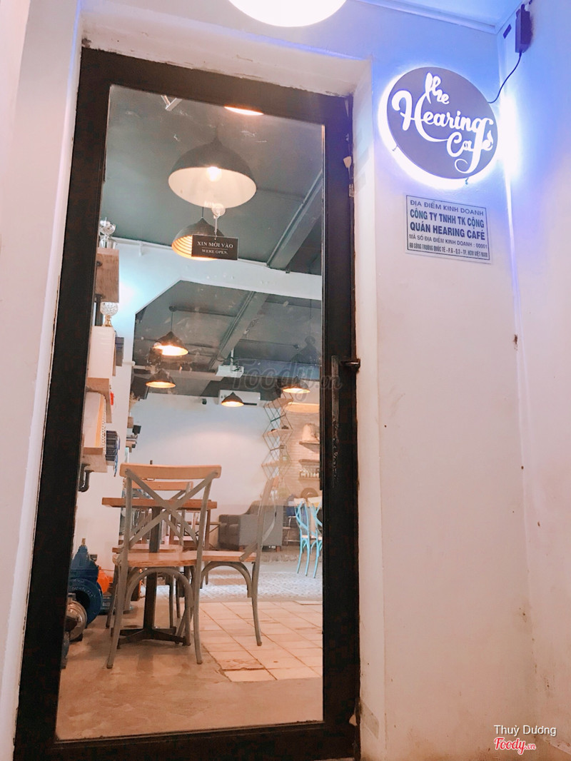 6.4The Hearing CafeVị trí: nằm ngay khu vực công trường quốc tế, trong một con hẻm nhỏ gần PL. Không gian: thang bộ bước lên quán hơi hẹp và có mùi hôi, nhưng khi mở cửa bước vào quán không gian rộng và ấm cúng. Dịch vụ: menu nhiều thức uống, giá tương đối, khu vực phù hợp để ngồi trò chuyện cùng bạn bè đồng nghiệp, thức uống pha chế ổn, mình thấy sinh tố trái cây với soda uống ngon ấy. Nhân viên: toàn mấy bạn trẻ, còn hơi vụng về nhưng nhanh nhẹn. Nhớ nói quán ấn dấu vào vé gửi xe để xuống lấy xe miễn phí nhé! ...Xem thêm