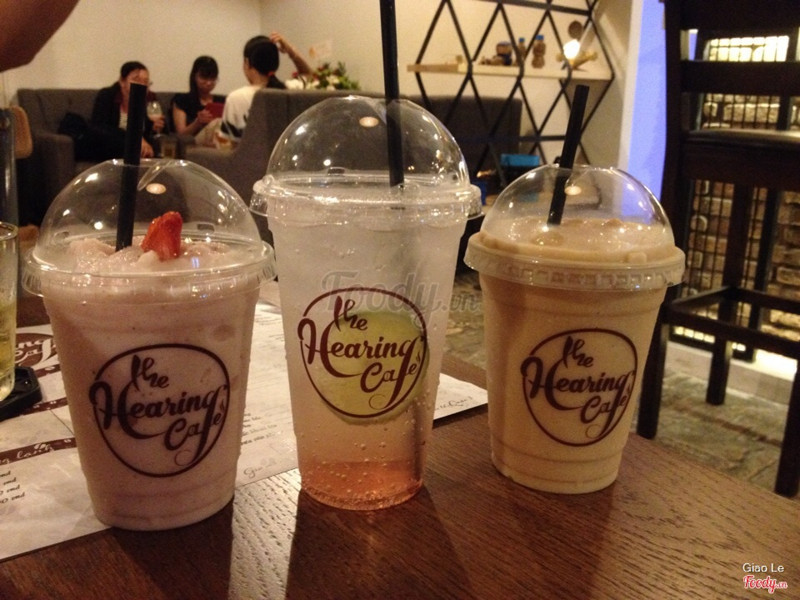 7.4The Hearing Cafe- Giá cả: Mặt bằng chung là khá ổn so với các quán CÓ THƯƠNG HIỆU ở đây, tầm 40k trở lên, nhưng theo tớ thì khá đắt :( . - Không gian: Chỉ mới bước vào chỗ order, chưa vào trong xem thử, nhưng có lẽ cũng như quán Cake & Ale cũ (đổi chủ thì phải) , rộng rãi, thoải mái, có mấy chú cún dễ thương. - Cung cách phục vụ: Ấn tượng ban đầu là khá ok. - Khẩu vị: Trà hoa đậu biếc ... thấy cũng như những loại trà khác :v Chắc có lẽ mình chưa quen cách thưởng thức trà chăng ]] ...Xem thêm