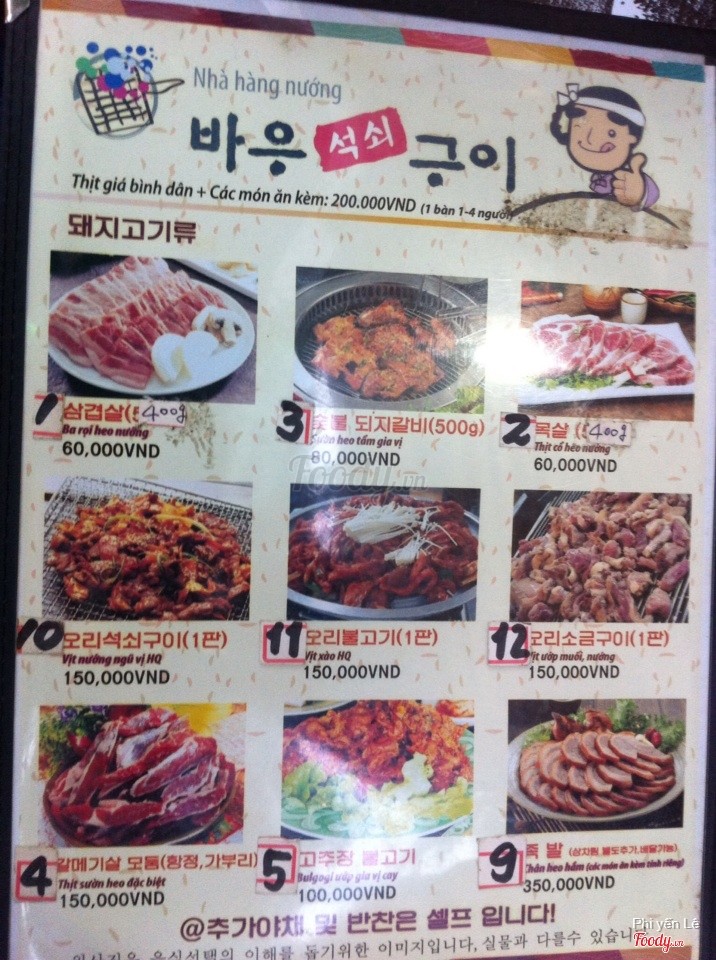 7.6Địa điểm lí tưởng để tụ họp bạn bèCác bạn xem phim Hàn Quốc hẳn ai cũng thích cảnh gia đình tụ tập bên bếp lửa ấm áp cùng ăn thịt nướng với nhiều gia vị bắt mắt. Thịt nườn HQ đã ko còn xa lạ với người VN vì quán ngày càng nhiều,nhưng quán thịt nướng này vẫn làm mình hài lòng hơn cả. Nằm trong khu của người HQ nên bảng hiệu là tiếng Hàn,ông bà chủ ko biết tiếng Việt và nhân viên cũng chỉ biết vài câu giao tiếp nên mình ko ghi lại được tên quán,chỉ có thể ghi địa chỉ thôi. So với giá cả hiện nay trên thị trường thì quán này khá rẻ,chất lượng ok.Thịt nướng nêm nếm vừa ăn,các món ăn kèm đa dạng và nếu hết có thể xin thêm thoải mái. Thịt có nhiều loại nhưng mình thấy ba rọi là ngon nhất,vừa giòn vừa đậm đà. Các bạn lưu ý 1 bàn 4-5 người là 200.000 tiền rau,kim chi,các phụ liệu ăn kèm (ko giới hạn số lượng,hết là đc tiếp thêm ngay), sau đó tiền thịt tính riêng.nhà mình đi 5 người lần nào cũng hết dưới 350.000, khá ổn cho 1 buổi tụ tập ấm cúng ...Xem thêm