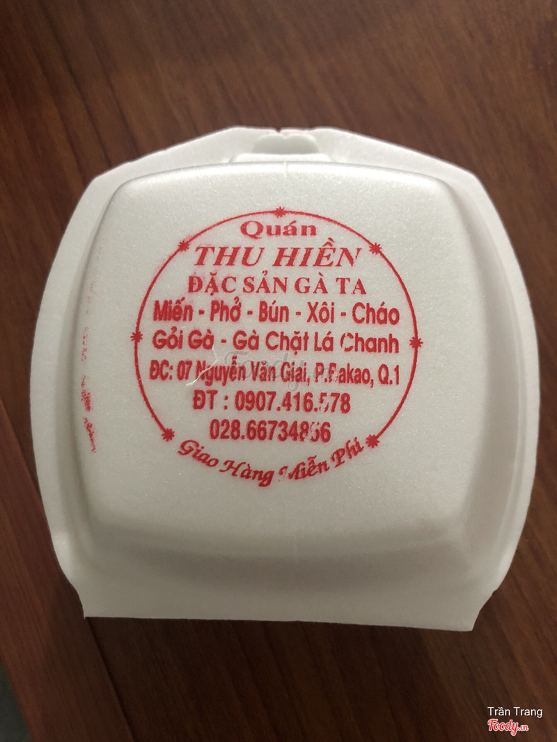 7.2Thu Hiền - Gỏi Gà & VịtVị trí và không gian: quán nằm ở ngay góc ngã tư đối diện chân cầu Bùi Hữu Nghĩa nên khá dễ tìm. Quán sạch sẽ, rộng và có nhiều bàn. Quán chuyên về món gà. Có phở, miến, xôi, cơm, cháo ăn kèm. 1 phần giá 30k, giá khá phù hợp. Nước dùng ở đây chưa đậm đà lắm. Nhưng ăn ở đây tâm đắc nhất là ko bị dị ứng bột ngọt. Quán ăn khá đc, nhưng nếu so sánh thì mình thích ăn ở Kỳ Đồng hơn, tuy giá chát hơn ở đây nhìu. Àh, mình thấy ở đây có bán gà bó xôi 270k/con thơm phức và có giao hàng tận nơi luôn ;) ...Xem thêm