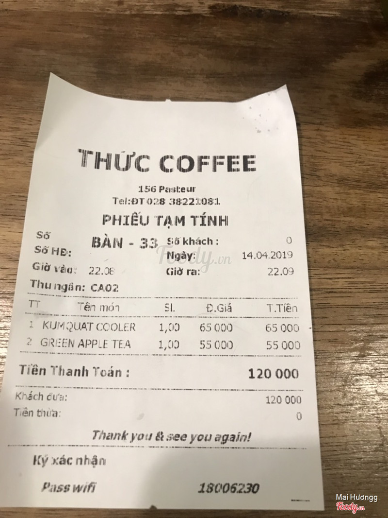 7.4Thức CoffeeThức là 1 thương hiệu quen thuộc với các cú đêm luôn, quán mở 24/7 luôn nên hôm nào thức đêm chạy deadline là mình ghé quán. Trên đường P-a-s-t-e-u-r có 2 quán Thức lận nha. Chỗ này thì nằm gần ngã tư Lý Tự Trọngg với P-a-s-t-e-u-r, gần Highlands coffee, không gian không được rộng bằng chi nhánh 182. Giữ xe ngay ngã tư. Chi nhánh của Thức thì lúc nào cũng đông đúc và nhộn nhịp hết. Mình gọi trà đào 45k, có tới 3,4 miếng đào to luôn. Trà đào pha cũng ok. Nhân viên bình thường. ...Xem thêm