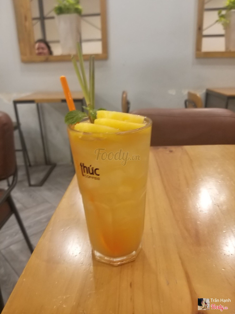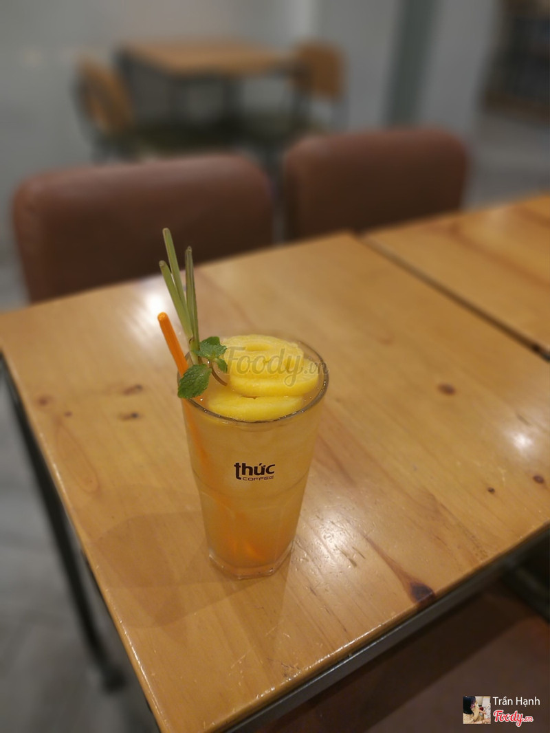 8.4Thức Coffee -***Ghé quán một mình để ngồi làm việc nên mình chọn thức huỳnh- thúc- kháng-, vừa gần di chuyển tiện mà không gian cũng vừa phải, không quá rộng ko quá nhỏ, ngồi thoải mái, càng về đêm thì càng đông đúc nhưng cũng vừa phải nên cũng dễ tập trung làm việc. Mình order món mới của thức là trà thơm gừng, mình ko dặn giảm đường hay đá gì hết để thưởng thức hương vị của món bình thường nhất. ly ra nhìn cũng bắt mắt với 3 lát thơm trên mặt, cây sả, hương vị chua ngọt nhẹ, vị gừng rõ nè, uống cũng dễ chịu, ko khó lắm dù mình ko hề hảo gừng nhé. lát thơm ăn được luôn, hơi chua 1 chút. Nhân viên ở đây dễ thương lắm, mình thích chi nhánh này nhất trong các thức mà mình đã được đi. ...View more