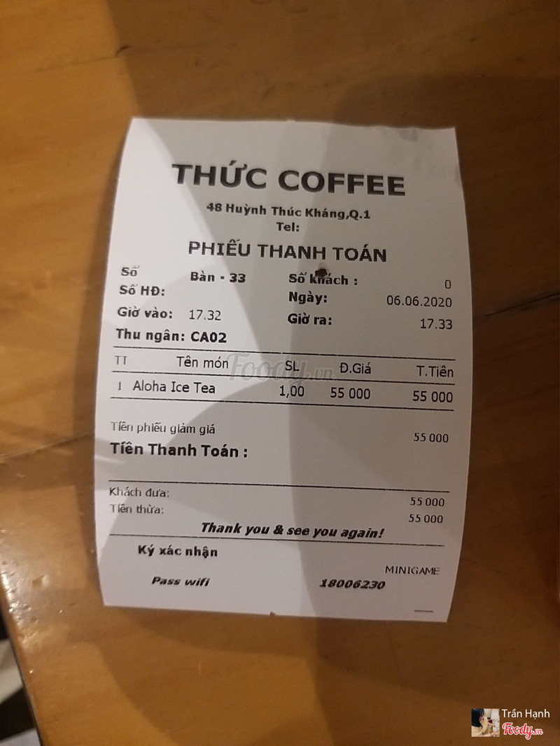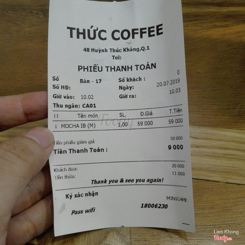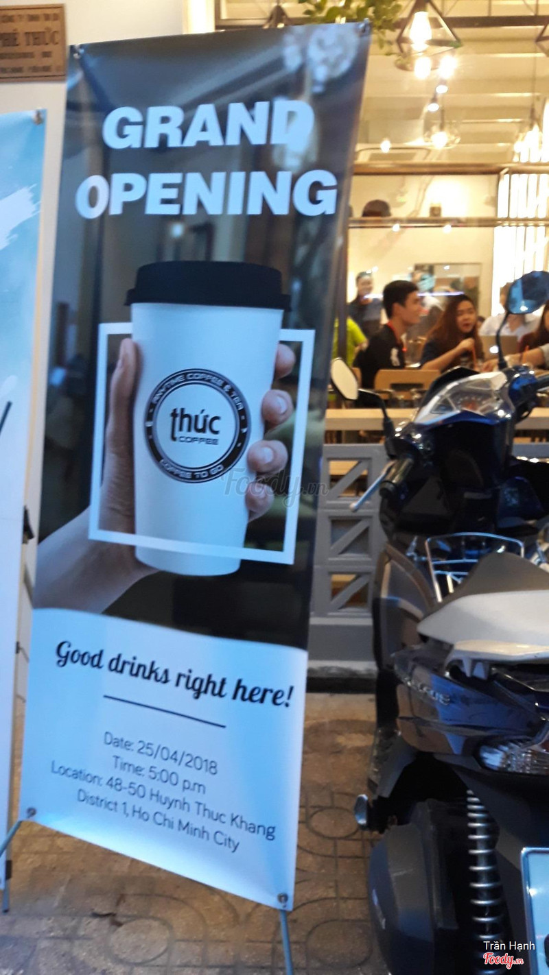 8.2Thức Coffee - Huỳnh Thúc KhángChi nhánh thức coffee ở huỳnh thúc kháng. Tiệm nằm trên đường Huỳnh thúc kháng, đoạn đường nằm giữa pasteur và tôn thất đạm, đường 1 chiều nhé. Vỉa hè phía trước tương đối rộng nên có thể gửi xe ngay trước cửa quán luôn, có chú bảo vệ. Bên trong không gian không quá rộng, bố trí bàn ghế sát nhau nên sức chứa cũng đủ lớn, chia thành 2 không gian bên trong và 1 số bàn ngồi ngoài trời, buổi tối ngồi phía ngoài tương đối mát mẻ cũng như là có mấy xe đẩy bán thức ăn vặt có thể mua lai rai. Mình hay ngồi bên trong, không gian bên phải, ổ điện bố trí khá nhiều, gần như mỗi bàn nên ngồi làm việc thích hợp, quán lại mở khuya nên ngồi lâu không sao. Mình đi hôm thứ 4 hay thứ 5 gì á, có chương trình đồng giá bánh nên sau khi order trà đào thì bị nhân viên dụ mua bánh tiramisu luôn. Trà đào của thức mình không đánh giá cao, vị syrup hơi gắt, thiếu vị thanh của trà. Bánh tiramisu thì 1 slide vừa phải, ko to ko nhỏ, ăn ok. Nhân viên nice, đi châm nước nhiều lần ...View more